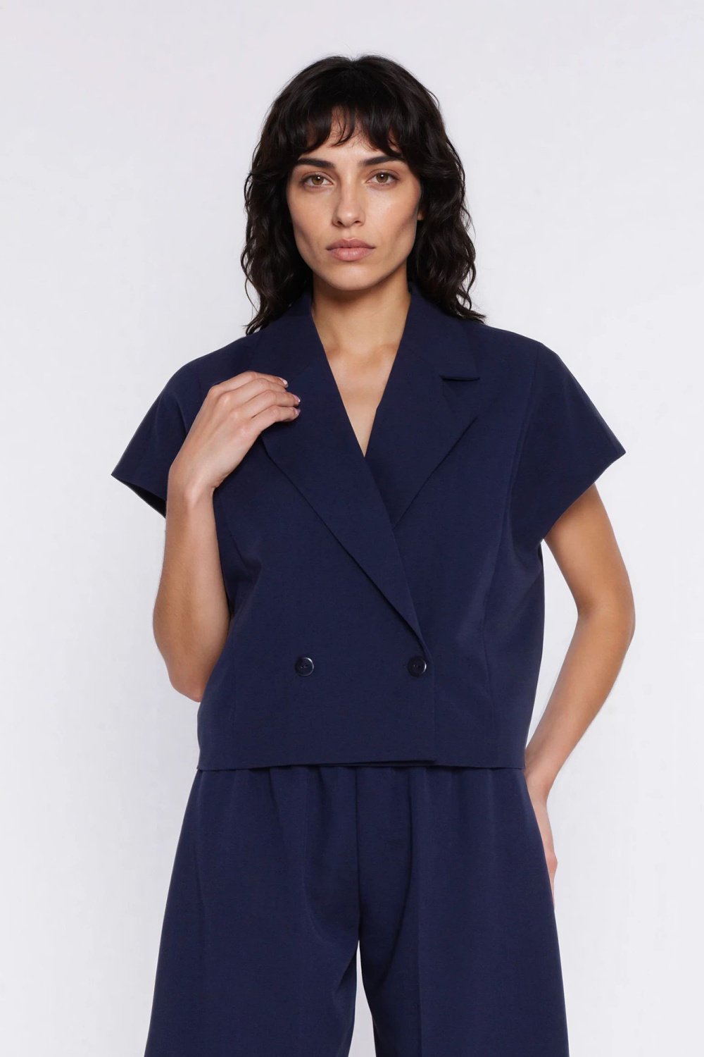 Le blazer court élégant pour femme de coupe classique regular est un élément stylé de la garde-robe qui allie l’élégance intemporelle au confort au quotidien. Le modèle possède un col classique et des manches courtes, ce qui lui confère légèreté et caractère moderne. La fermeture à deux boutons permet un ajustement confortable, et une bande élastique discrète à la taille à l’arrière modèle subtilement la silhouette, garantissant confort et liberté de mouvement. Le blazer est doublé, ce qui garantit une finition élégante et un confort de port. Il se marie parfaitement avec un pantalon, une jupe ou une robe, créant des ensembles élégants et polyvalents pour différentes occasions.
