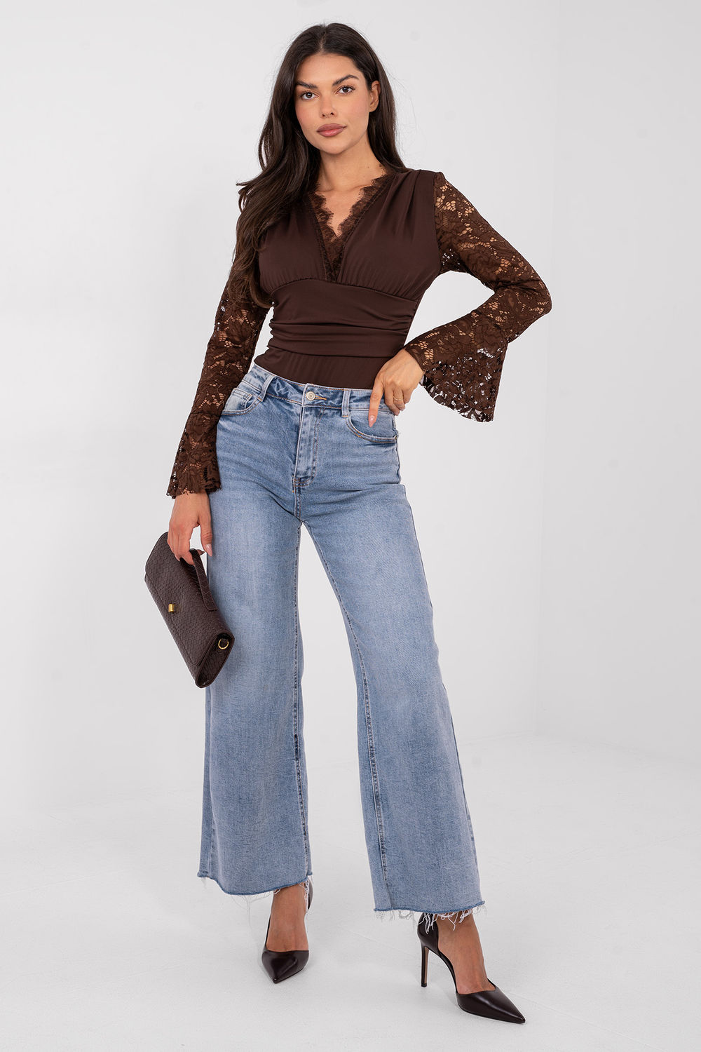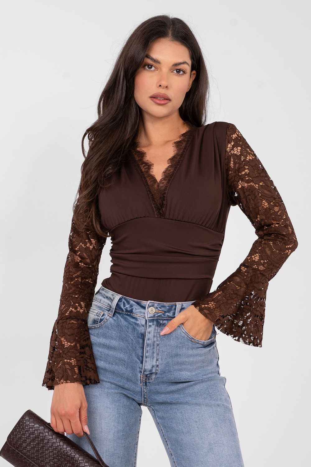 Un body élégant fabriqué à partir d’un mélange de polyester et d’élasthanne, alliant confort et style raffiné. Le modèle de longueur standard avec un décolleté en forme de cœur souligne la silhouette et donne à l’ensemble un caractère subtilement féminin. La longue manche évasée en dentelle ajoute légèreté et élégance, tandis que les plis décoratifs sur le tissu à l’avant sont un détail stylé qui distingue le body. Les bonnets intégrés et renforcés ainsi que la fermeture pratique à crochets assurent une haute fonctionnalité, facilitant l’enfilage et le retrait. Le motif lisse dominant rend le body polyvalent et parfait pour les occasions spéciales ainsi que pour les tenues élégantes au quotidien.
