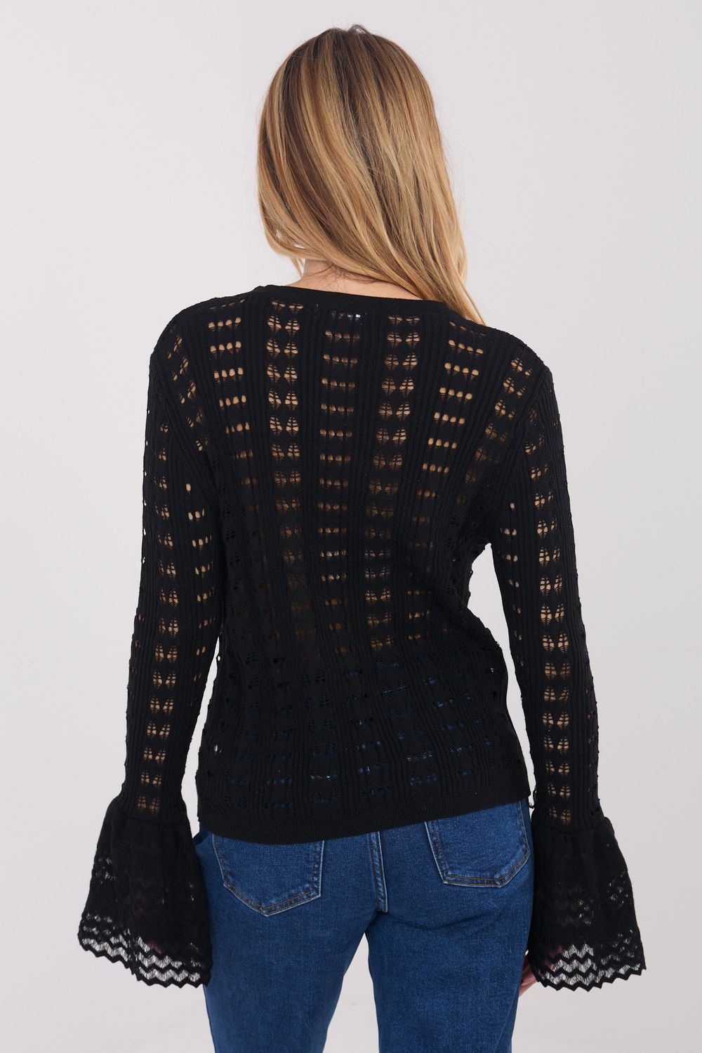 Un pull élégant pour femme dans le style bohème, idéal pour les tenues de tous les jours. Le modèle se distingue par un motif ajouré spectaculaire qui apporte légèreté, subtilité et caractère artistique à l’ensemble. Le pull est fabriqué à partir d’un mélange de polyester et de viscose, le rendant doux, agréable au toucher et confortable à porter. Sa longueur standard en fait un modèle polyvalent facile à assortir avec différents éléments de la garde-robe. Les manches longues évasées soulignent l’ambiance bohème et ajoutent une élégance décontractée à l’ensemble. Le modèle possède un décolleté en V qui affine la silhouette, ainsi qu’une fermeture à boutons permettant de porter le pull ouvert ou fermé. C’est un choix parfait pour les femmes appréciant le confort, le style naturel et les détails originaux dans leurs tenues quotidiennes.