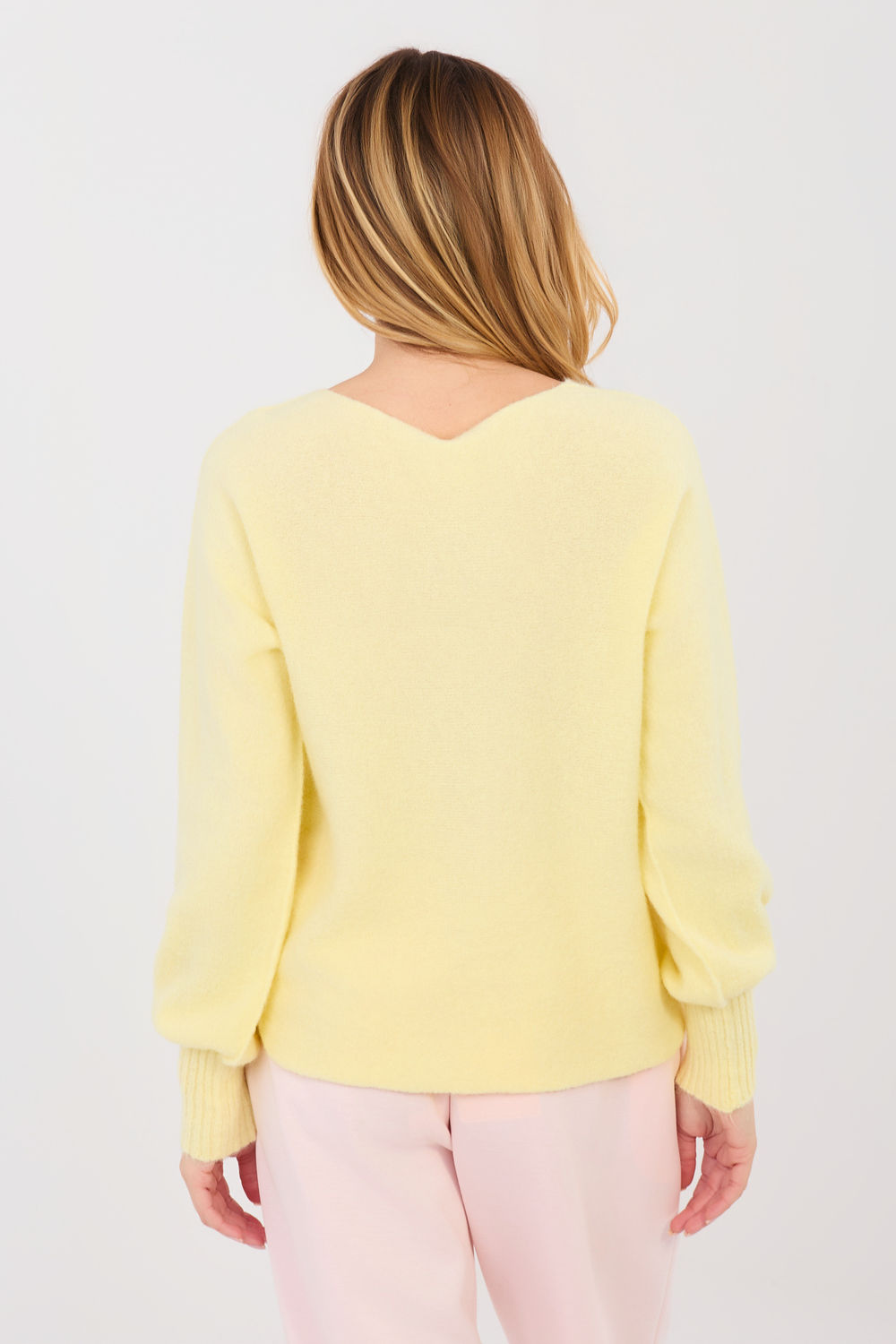 Un pull élégant et confortable pour femme dans un style décontracté, idéal pour être porté au quotidien et au travail. Modèle au motif lisse, qui conviendra parfaitement aux tenues classiques et modernes. Fabriqué à partir d’un mélange de haute qualité d’acrylique, de Polyamide, d’élasthanne et de viscose, il assure douceur, élasticité et confort toute la journée. Sa longueur standard lui permet de s’adapter parfaitement à différentes silhouettes. Les manches longues légèrement bouffantes ajoutent une touche moderne et féminine. Le col en V souligne subtilement la ligne du cou et du décolleté. Modèle sans fermeture, au design intemporel.