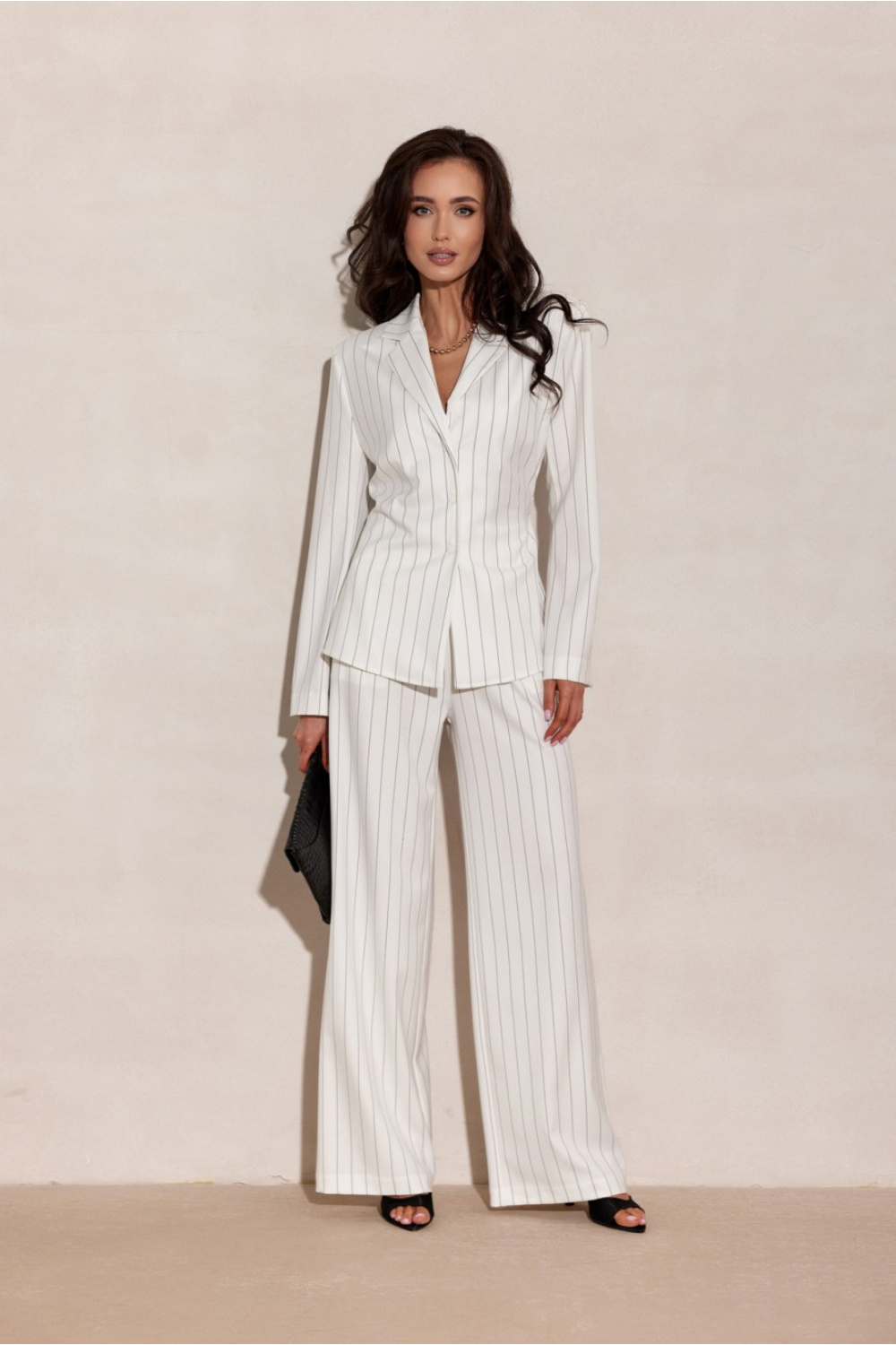 La blouse élégante, inspirée par la coupe d’une veste, se distingue par sa délicate ceinture à la taille, sa fermeture subtile à boutons et ses rayures verticales qui affinent la silhouette de manière optique. La coupe soigneusement travaillée met en valeur la forme féminine tout en garantissant un confort de port. Ce modèle a été fabriqué en Pologne avec une attention particulière aux détails et à la haute qualité de la finition. La blouse est dotée d’épaulettes qui donnent à la silhouette un caractère distinctif et moderne. Elle conviendra parfaitement aussi bien pour des tenues de tous les jours que pour des tenues professionnelles, associée à des pantalons élégants, une jupe ou en tant qu’alternative stylée à la veste classique.