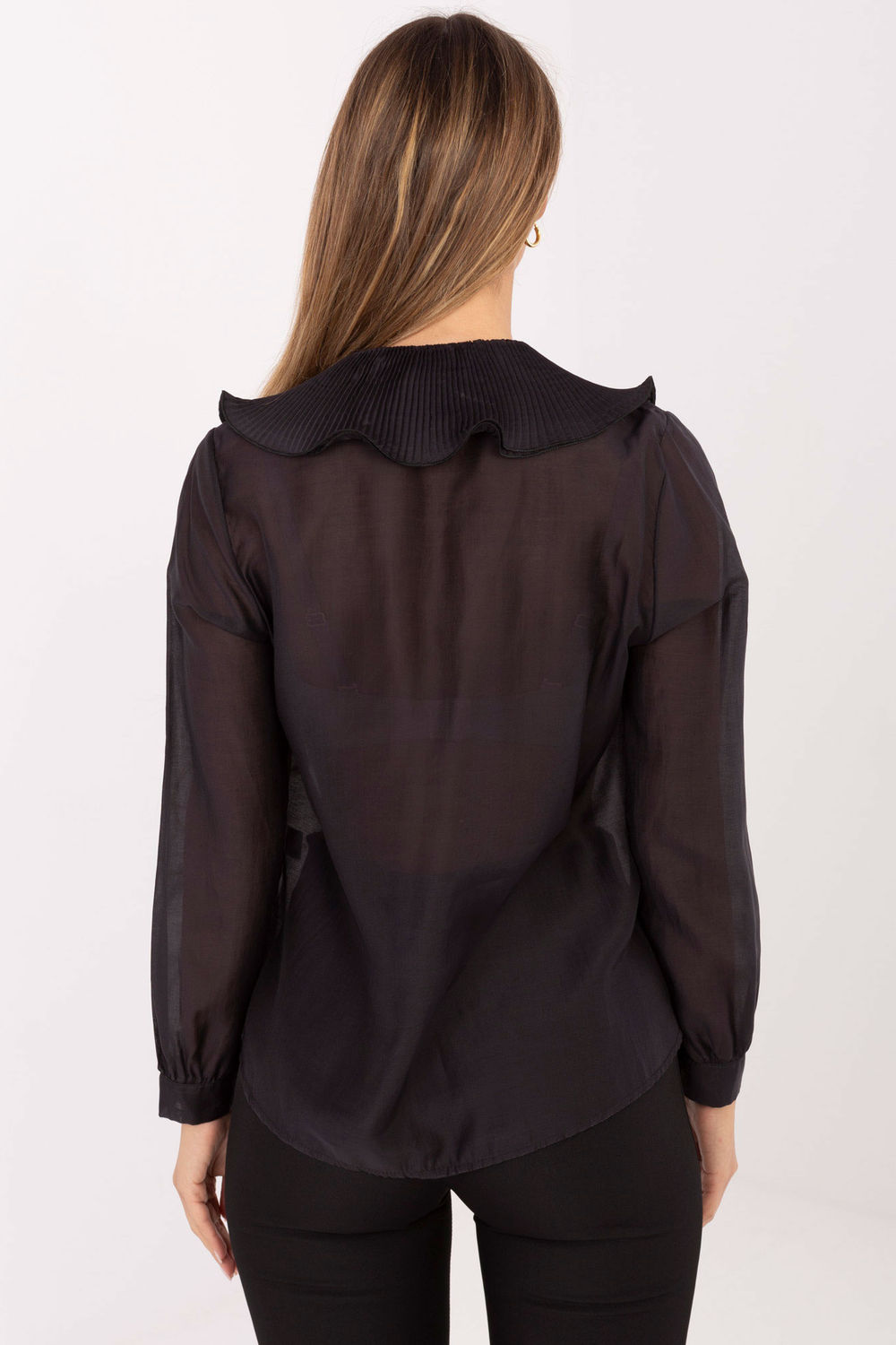 Chemise élégante pour femme classique, idéale pour tous les jours, au travail et pour des occasions plus habillées. Fabriquée à partir d’un mélange de tencel et de polyester de haute qualité, assurant douceur, légèreté et confort tout en donnant à la chemise un aspect élégant et classique. Le modèle de longueur standard se caractérise par un motif lisse mettant en valeur son style intemporel. Le col rond met subtilement en valeur le cou, et l’avant est orné d’un jabot se connectant au col, fabriqué dans le même matériau que le jabot, ajoutant ainsi à la chemise une finesse et un chic exceptionnels. La chemise a des manches longues avec des poignets et une fermeture à boutons, soulignant son caractère classique et facilitant son adaptation à la tenue. C’est une proposition pour les femmes qui apprécient l’élégance alliée au confort, ainsi que des détails décoratifs subtils dans leur tenue quotidienne et habillée.