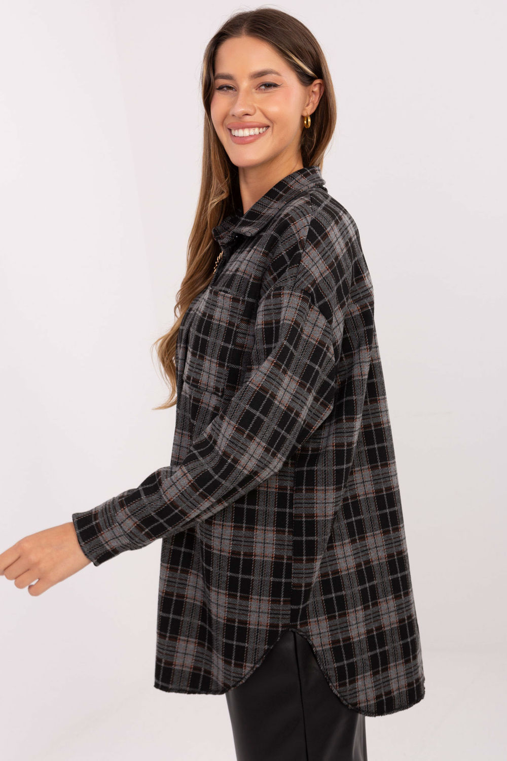 Chemise en flanelle pour femmes élégante et confortable, alliant un caractère décontracté à une élégance adaptée au travail et aux tenues quotidiennes. Fabriquée à partir d’un mélange de polyester, de viscose et d’élasthanne de haute qualité, elle garantit confort, légèreté et durabilité. Le modèle a une longueur standard, des manches longues, un col classique et une fermeture à boutons permettant d’ajuster le décolleté et de s’adapter à la silhouette. Le motif à carreaux confère à la chemise un caractère intemporel et tendance, tandis que la poche poitrine et la broche amovible ajoutent une touche fonctionnelle et élégante. Une proposition polyvalente qui conviendra parfaitement aux tenues décontractées de tous les jours ainsi qu’aux tenues de travail, alliant confort, style à la mode et détails élégants.