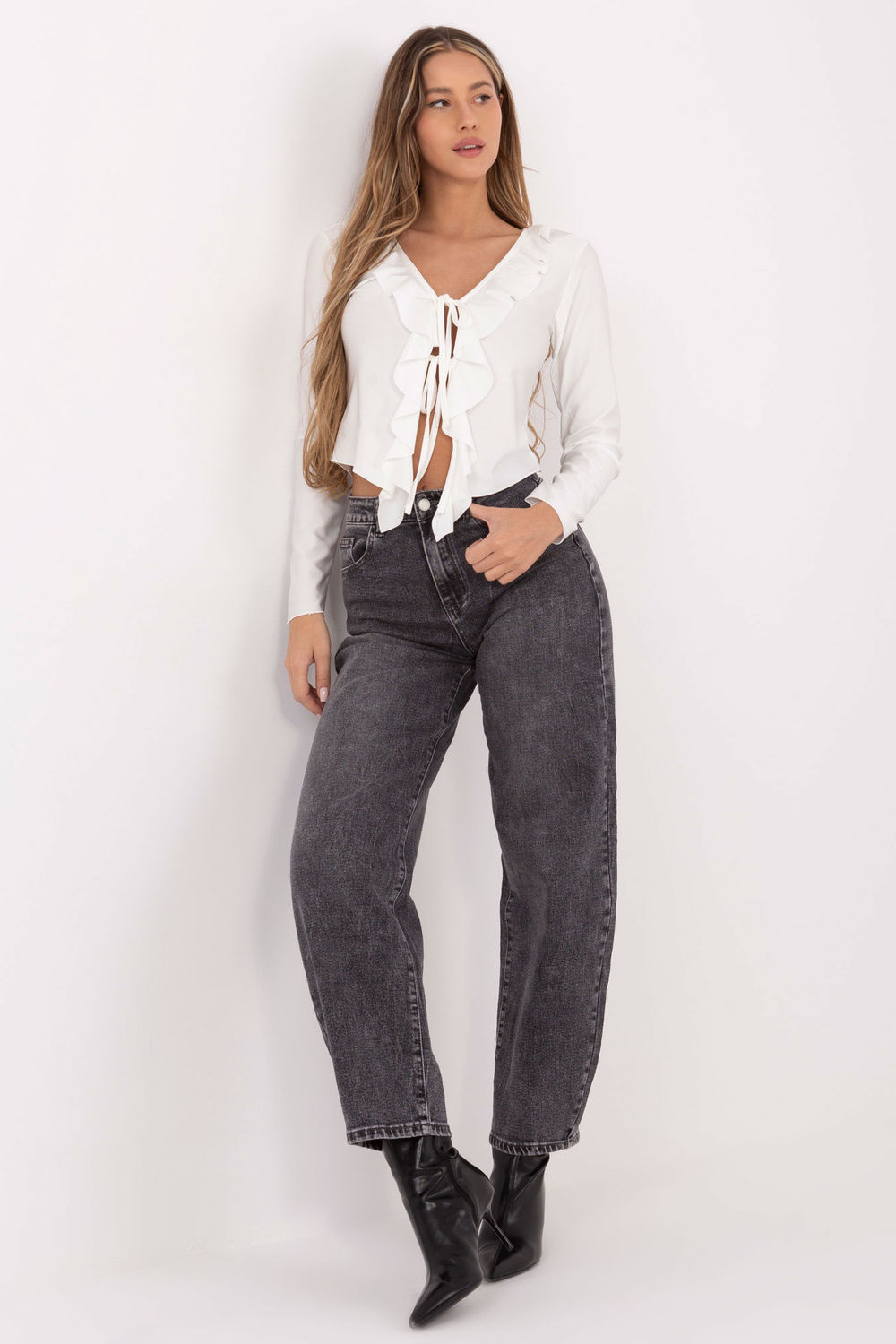 Une élégante blouse pour femme est une proposition idéale pour des occasions formelles, des sorties festives et des événements où le style et la sophistication comptent. Maintenue dans un style élégant, elle séduit par sa forme subtile et ses détails féminins. Fabriqué à partir d’un mélange de polyester et de viscose, le modèle assure légèreté, confort et un beau drapé sur la silhouette. Le motif lisse et dominant confère à la blouse un caractère minimaliste, ce qui la rend parfaitement assortie aussi bien avec des jupes classiques qu’avec des pantalons élégants. La blouse a une longueur courte, ce qui donne à la tenue une expression moderne, et la longueur des manches s’intègre parfaitement dans le caractère élégant du modèle. Le plus grand atout est le décolleté avec un nœud spectaculaire, qui remplace la fermeture traditionnelle à boutons, créant en même temps une touche délicatement romantique. Un volant supplémentaire à l’avant ajoute de la légèreté et de la subtile élégance à l’ensemble, soulignant le style féminin de la blouse. C’est une proposition exceptionnelle pour les femmes qui apprécient l’élégance associée à des détails modernes et décoratifs. Parfaite pour les réceptions, les célébrations familiales ou les sorties élégantes en soirée.