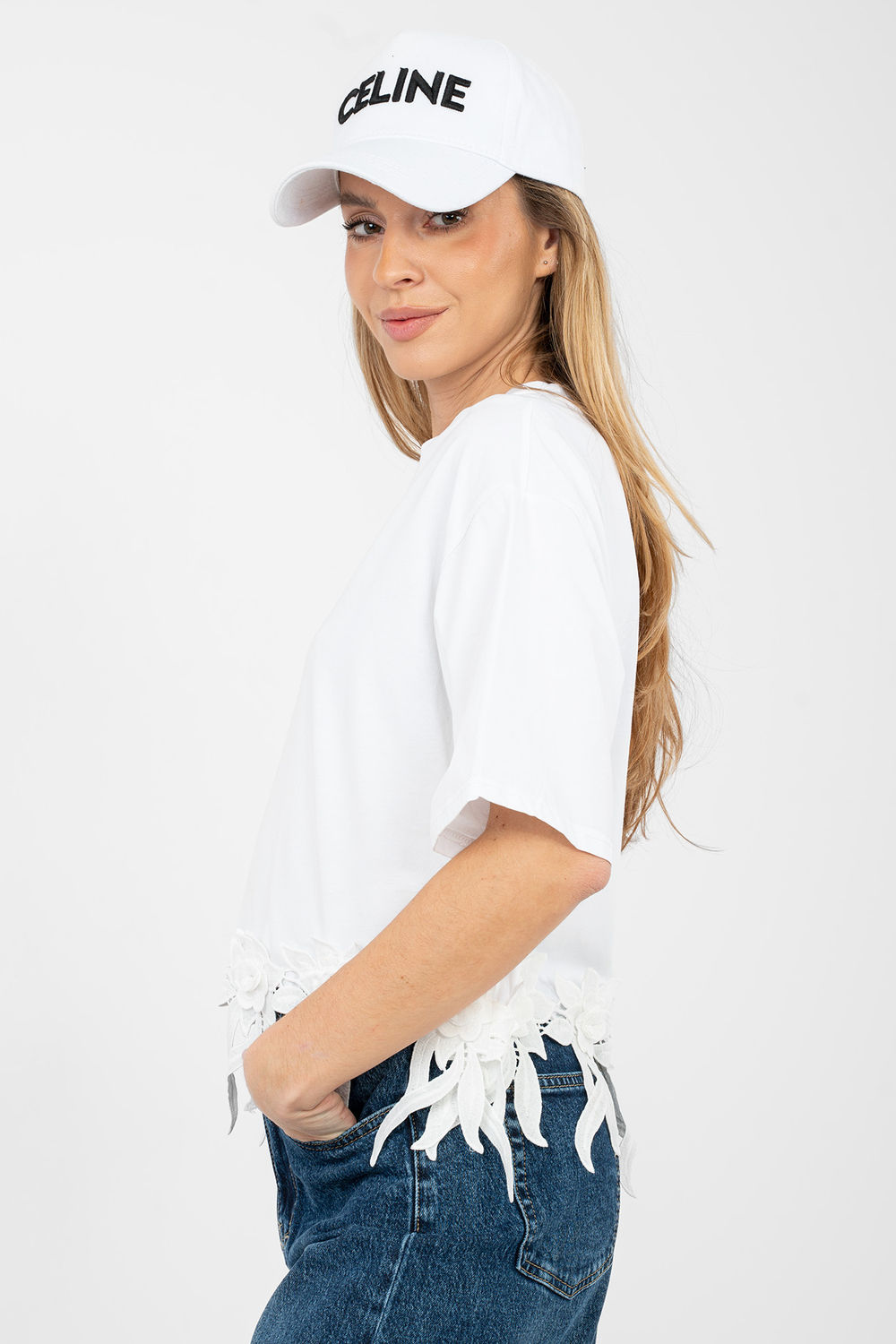 Chemise casual pour femme, idéale pour des tenues confortables et décontractées. Fabriquée en coton de haute qualité avec un ajout d’élasthanne, elle assure un confort de port, une élasticité et un bon ajustement à la silhouette. Ce modèle de longueur courte et à manches courtes conviendra parfaitement aux journées plus chaudes. L’encolure ronde confère à la chemise un caractère classique et universel. Sur le devant, il y a une petite étiquette qui enrichit subtilement la coupe simple. Un autre atout est la broderie appliquée en bas de la chemise, ajoutant une touche délicate et féminine à l’ensemble. La chemise se marie parfaitement avec des jeans, des shorts et des jupes, créant des ensembles légers et décontractés au quotidien.