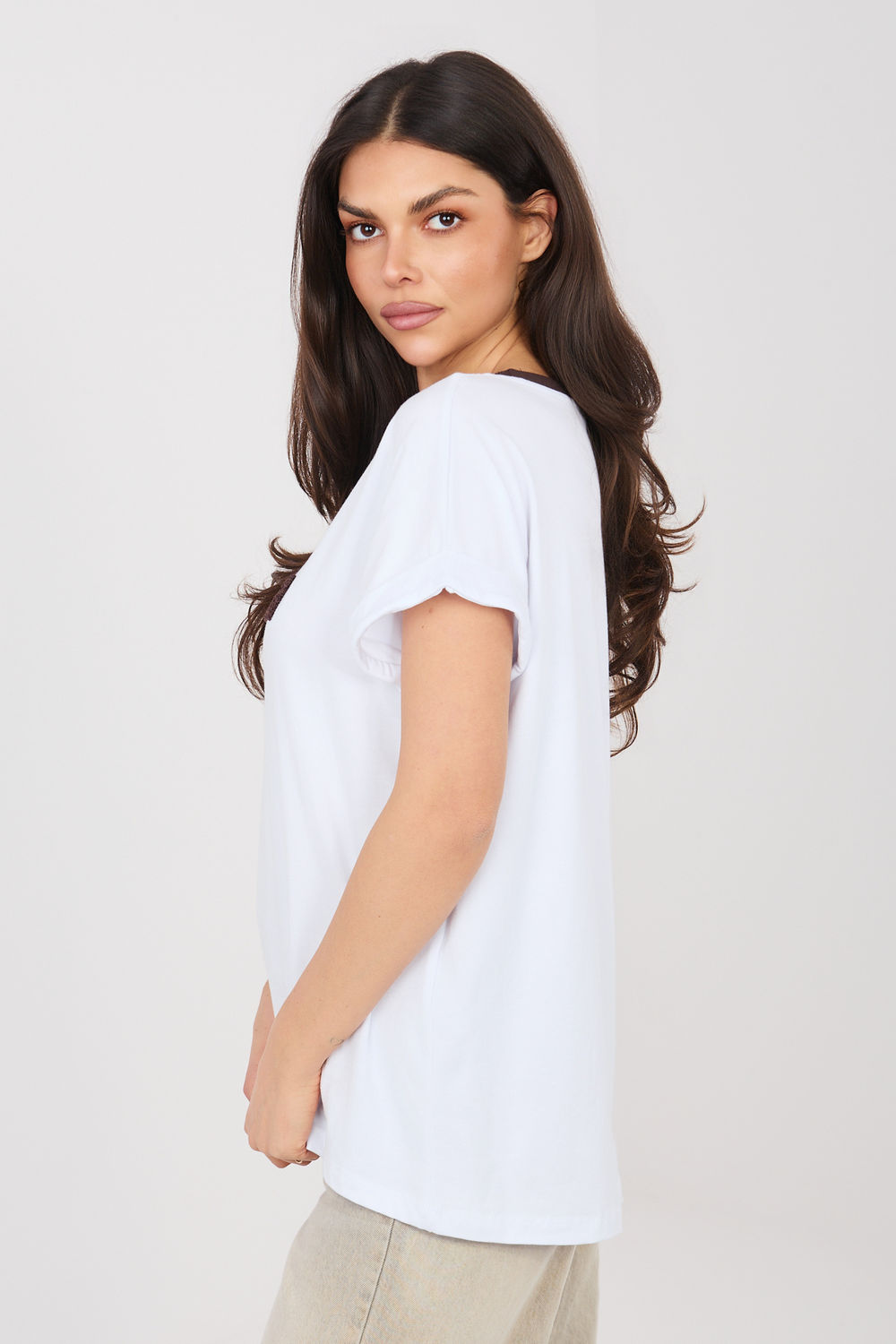 Chemise élégante et confortable au quotidien dans un style décontracté, idéale pour les tenues de tous les jours. Le modèle a un col rond classique garni d’une bordure contrastée, qui souligne subtilement la ligne du cou et ajoute du caractère à toute la chemise. La chemise est ornée d’une inscription en relief sur le devant, qui constitue l’élément dominant du motif et donne à l’ensemble un look moderne et à la mode. Les manches courtes et la longueur standard assurent un confort de port, et la coupe simple permet à la chemise de s’adapter librement à la silhouette. Fabriqué en coton de haute qualité avec une touche d’élasthanne, le matériau est doux, agréable au toucher et légèrement élastique, ce qui garantit un confort toute la journée. Le modèle n’a pas de fermeture, soulignant la simplicité et la fonctionnalité du design.