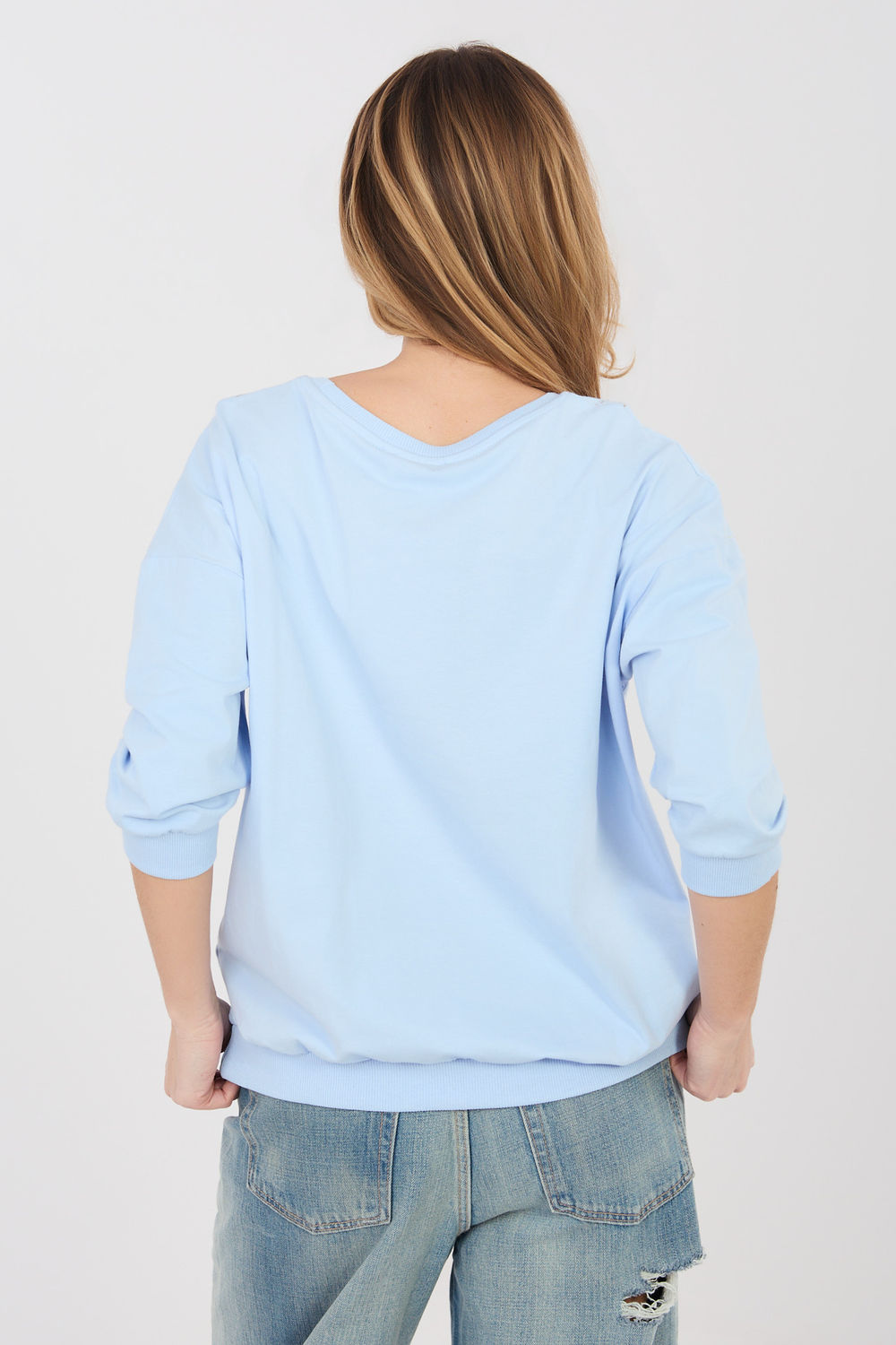 Un chemisier pour femmes confortable au style quotidien, idéal pour des tenues décontractées. Ce modèle de longueur standard comporte un col rond classique et des manches 3/4 pratiques qui assurent un confort de port et conviennent à toutes les saisons. À l’avant, il y a un motif géométrique qui est l’élément décoratif dominant et donne au chemisier un caractère moderne. La coupe simple permet au modèle de bien se poser sur la silhouette et de s’adapter facilement à de nombreuses tenues. Le chemisier est fabriqué en coton de haute qualité avec une touche d’élasthanne, ce qui rend le tissu doux, agréable pour la peau et légèrement élastique. Le modèle n’a pas de fermeture, ce qui souligne son caractère confortable et quotidien.