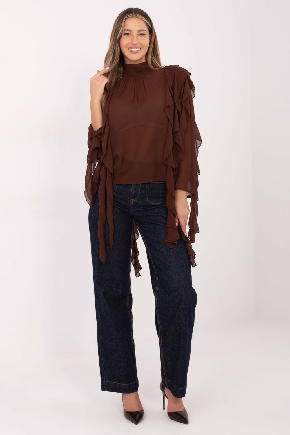 La chemise élégante pour femme est le choix idéal pour tous les jours, les occasions spéciales et les soirées, lorsque vous voulez mettre en valeur votre style de manière subtile mais élégante. Son motif lisse donne une touche de classe à l’ensemble et permet de l’associer facilement aussi bien avec un pantalon élégant qu’une jupe. Ce modèle est fabriqué dans un mélange agréable de viscose et de polyester, ce qui rend la chemise douce, légèrement élastique et elle se pose magnifiquement sur la silhouette. Sa longueur standard et ses manches longues la rendent élégante et polyvalente. Le col roulé met en valeur le cou et ajoute une touche de mystère élégant, tandis que la fermeture à boutons au cou facilite l’enfilage et constitue un accent décoratif délicat. La chemise séduit également par ses détails exceptionnels, des volants décoratifs dans le dos, sur le devant et sur les manches, qui lui confèrent légèreté, un caractère romantique et une élégance moderne. C’est un choix parfait pour les femmes qui aiment combiner la classique subtilité avec des finitions féminines et élégantes.
