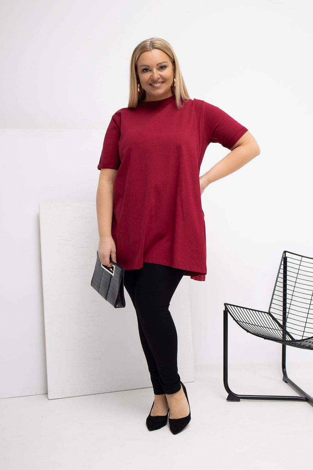 Chemise allongée dans un style décontracté, idéale pour les occasions quotidiennes. Fabriqué en coton agréable au toucher avec une touche d’élasthanne, ce qui le rend doux, élastique et confortable à porter toute la journée. Le motif lisse rend la chemise facile à assortir à de nombreuses tenues. Le modèle a un col rond et des manches courtes, ce qui lui donne un caractère universel et décontracté. L’absence de fermeture souligne la forme simple et confortable. Un autre atout est la volant en bas à l’arrière, qui anime subtilement la coupe et lui ajoute du charme féminin. Une proposition idéale au quotidien avec des jeans, des leggings ou une jupe.