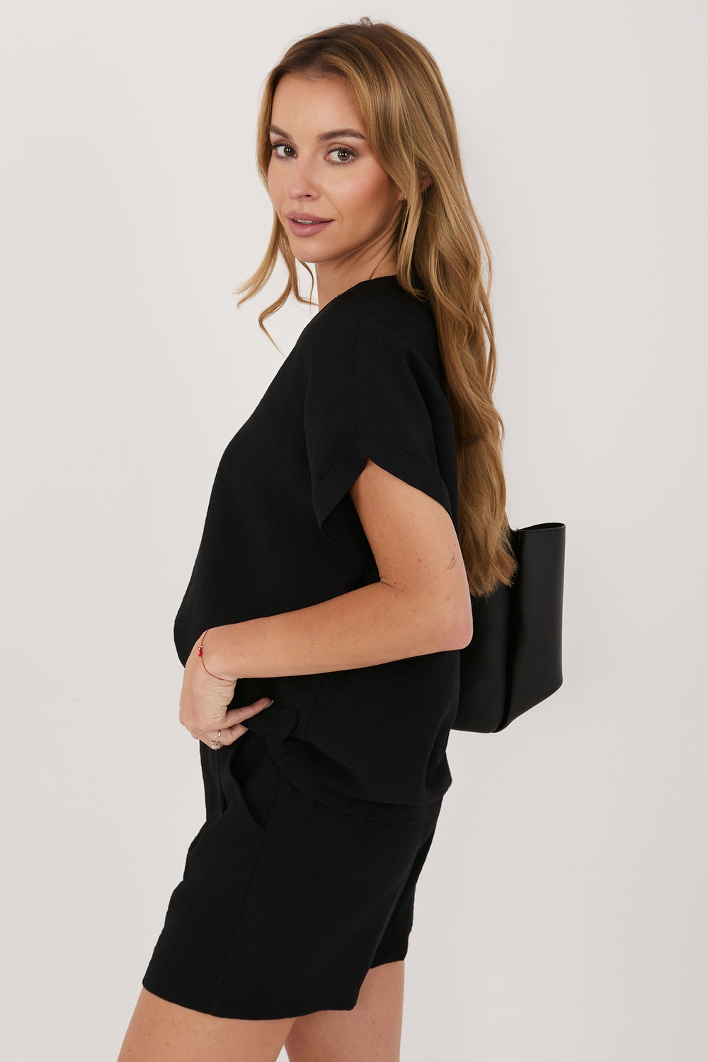 Une chemisette féminine élégante et confortable est un choix parfait pour les tenues quotidiennes. Fabriquée à partir d’un mélange de viscose et de Polyamide de haute qualité, elle offre légèreté, respirabilité et confort toute la journée. Ce modèle de longueur standard avec des manches courtes sera parfait pour les journées plus chaudes, offrant une liberté de mouvement et un look polyvalent. Le tissu lisse souligne le caractère minimaliste de la chemisette, ce qui la rend facile à assortir avec de nombreux éléments de garde-robe. À l’avant, il y a un pli décoratif qui ajoute une élégance subtile à l’ensemble et distingue le modèle des coupes classiques. Le décolleté en V associé à une encolure montante apporte une touche moderne et stylée, mettant en valeur joliment le cou. La chemisette n’a pas de fermeture, ce qui améliore le confort d’utilisation. Parfaite pour le travail, les réunions ou les promenades quotidiennes, elle se marie parfaitement aussi bien avec un pantalon qu’une jupe.