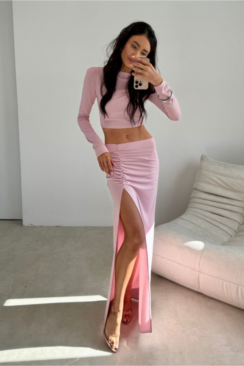 Le chemisier rose ajusté à la silhouette et à manches longues souligne subtilement la silhouette, créant une base intemporelle pour de nombreuses tenues. Son caractère minimaliste lui permet de s’intégrer parfaitement dans des tenues élégantes ainsi que dans des looks décontractés au quotidien, vous pouvez l’associer à une jupe ajustée fendue, des pantalons élégants ou des jeans classiques. Le modèle a été conçu et fabriqué en Pologne avec une attention particulière à chaque détail, ce qui se traduit par une haute qualité de fabrication et un grand confort à porter. Dans le dos, il y a un décolleté plus profond qui ajoute une touche féminine et sensuelle à l’ensemble.