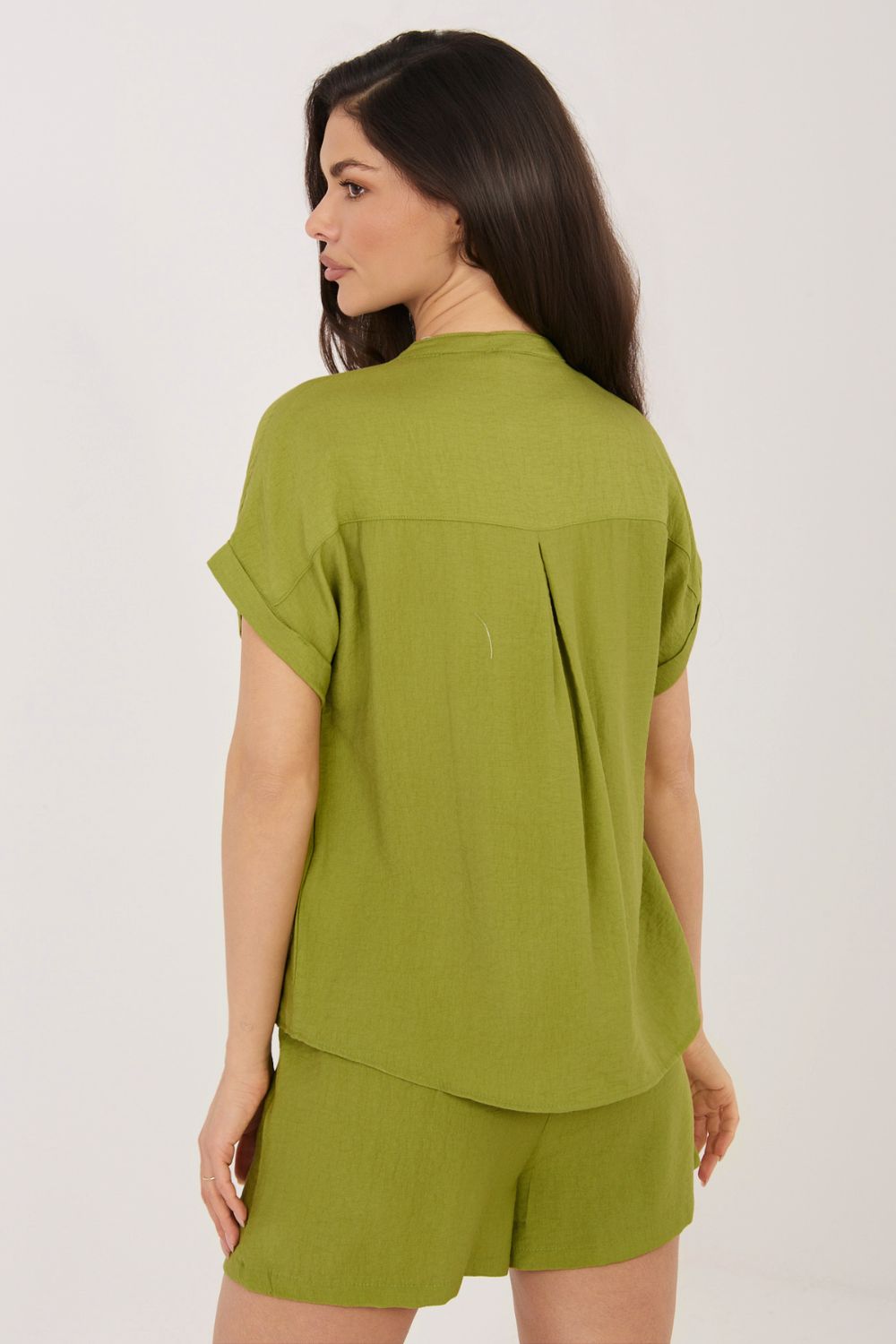 Une blouse élégante et confortable pour femmes est un excellent choix pour les tenues quotidiennes. Fabriquée à partir d’un mélange de haute qualité de viscose et de Polyamide, elle offre légèreté, respirabilité et confort tout au long de la journée. Le modèle de longueur standard avec des manches courtes est parfait pour les journées plus chaudes, offrant une liberté de mouvement et un aspect polyvalent. Le tissu lisse met en valeur le caractère minimaliste de la blouse, ce qui la rend facile à assortir à de nombreux éléments de la garde-robe. À l’avant, il y a une patte décorative qui ajoute une touche de subtil élégance et distingue le modèle des coupes classiques. Le décolleté en V associé à un col montant apporte une touche moderne et stylée, mettant joliment en valeur le cou. La blouse n’a pas de fermeture, ce qui augmente le confort d’utilisation. Parfaite pour le quotidien au travail, pour les réunions ou les promenades, elle se marie parfaitement avec un pantalon ou une jupe.