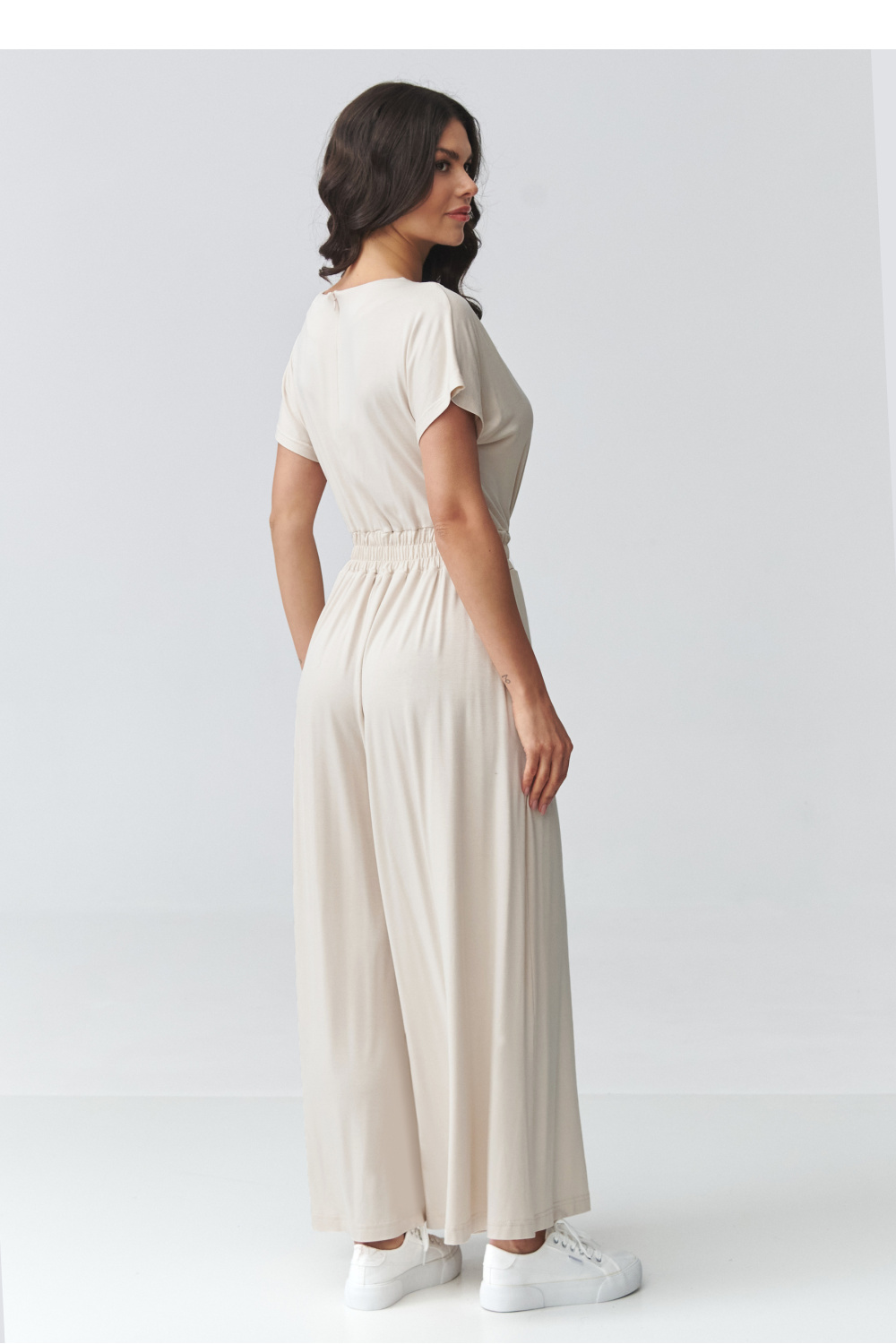 Une combinaison moderne pour femme avec des jambes larges est une excellente proposition pour les femmes qui apprécient le style et le confort en un seul. La coupe ample et fluide se pose magnifiquement sur la silhouette, et les plis élastiques à la taille la mettent subtilement en valeur. Le profond décolleté en V affine le cou et ajoute un caractère féminin à l’ensemble. Cette combinaison élégante à manches courtes convient parfaitement aux tenues de tous les jours ainsi qu’aux occasions plus formelles. Les jambes larges et tombantes offrent un confort de port et s’inscrivent dans les tendances actuelles. C’est un choix idéal comme combinaison pour un mariage, une réception, un rendez-vous ou pour le travail. Grâce à sa coupe Taille unique, ce modèle se marie parfaitement avec des talons hauts, des sandales ou des chaussures de sport, créant une tenue dans un esprit smart casual. Si vous cherchez une alternative à la robe, cette combinaison moderne pour femme sera une excellente solution.