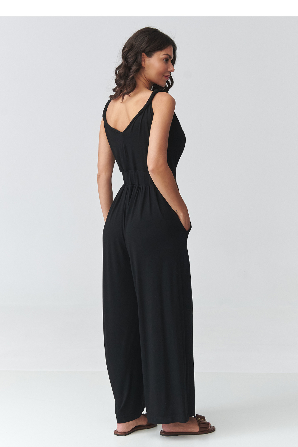 La combinaison élégante pour femme à bretelles est une proposition idéale pour les femmes qui recherchent un mélange d’élégance et de confort. Le tissu léger et fluide se pose magnifiquement sur la silhouette, tandis que la taille soulignée confère des proportions et un caractère féminin. Le décolleté subtil en V affine la partie supérieure de la silhouette et ajoute de la légèreté à l’ensemble. Le modèle a des jambes larges qui offrent une liberté de mouvement et s’inscrivent dans les tendances actuelles. Grâce à cela, la combinaison longue pour femme convient parfaitement tant pour tous les jours que pour des occasions spéciales. C’est une excellente alternative à la robe, parfaite comme combinaison pour un mariage, une réception, des vacances ou un rendez-vous. La coupe polyvalente permet une variété de styles, associée à des sandales crée un look léger et estival, tandis qu’avec des talons, elle prend un caractère plus élégant. Si vous recherchez un modèle intemporel, cette combinaison à la mode avec des jambes larges sera un excellent choix.