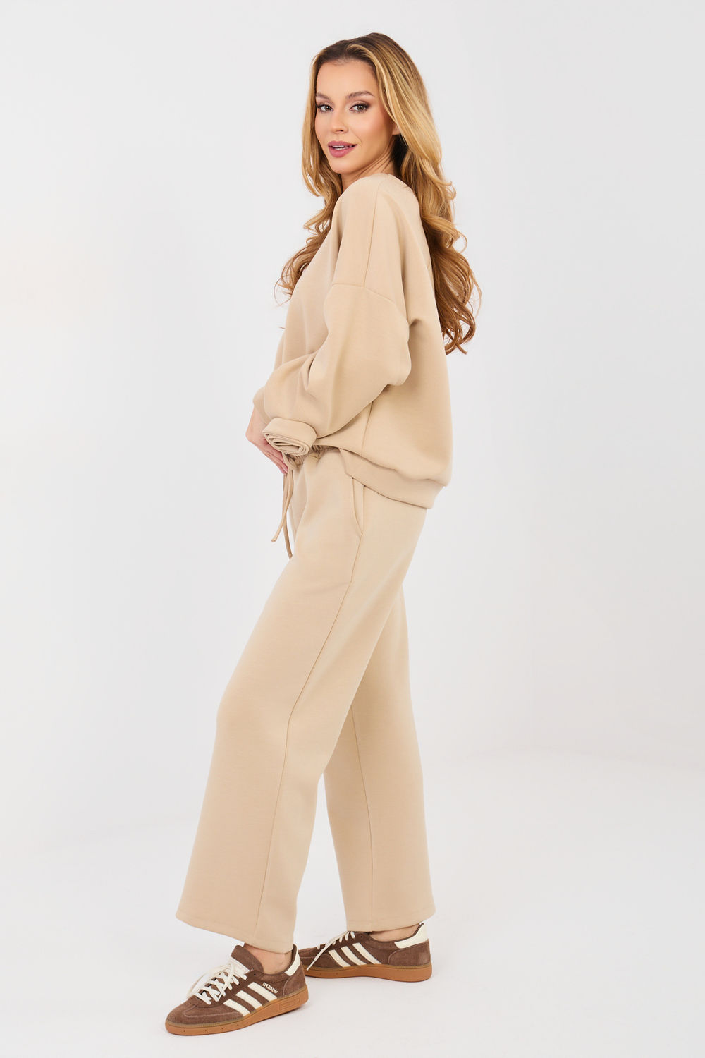 Ensemble de femme élégant composé d’un sweat-shirt et d’un pantalon, idéal pour des tenues décontractées au quotidien. Fabriqué en viscose douce et agréable au toucher avec une touche d’élasthanne, qui assure un confort et une liberté de mouvement toute la journée. Le sweat-shirt de longueur moyenne a un col rond et des manches longues, ornées d’une rose subtile en tissu au poignet, qui ajoute une touche féminine et originale à l’ensemble. Le pantalon à taille haute et aux jambes droites garantit confort et une apparence intemporelle. À la taille, une bande élastique et des cordons permettent un ajustement parfait à la silhouette. Les poches latérales ajoutent de la fonctionnalité à l’ensemble. Le motif lisse rend l’ensemble polyvalent et facile à styliser, parfait pour une promenade ou au quotidien. C’est une proposition pour les femmes qui apprécient le confort, le style et les détails subtils.