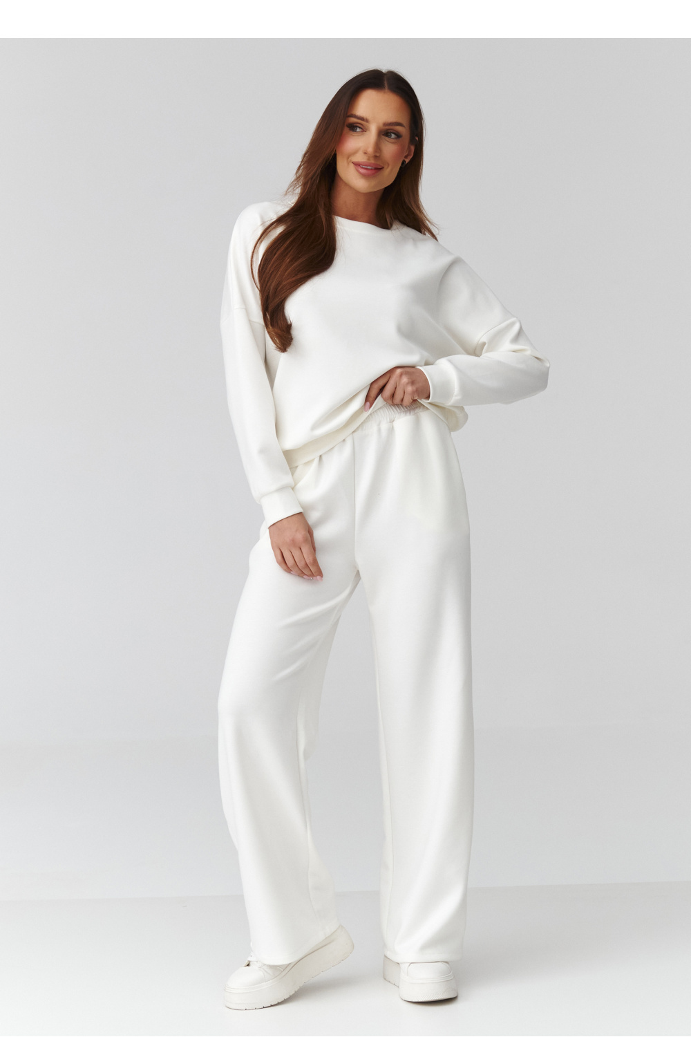 Un ensemble féminin élégant et confortable de taille unique, parfait pour une utilisation quotidienne, pour le télétravail, pour une promenade ou pour un voyage. L’ensemble se compose d’un sweat ample à manches longues et d’un pantalon à large jambe, offrant un confort maximal et un look à la mode. Fabriqué dans un matériau doux et agréable au toucher, qui s’ajuste bien à la silhouette et ne restreint pas les mouvements. La coupe Taille unique s’adapte à différents types de morphologie. Les couleurs disponibles ajoutent de la fraîcheur et s’inscrivent parfaitement dans les tendances actuelles. Fabriqué en Italie.