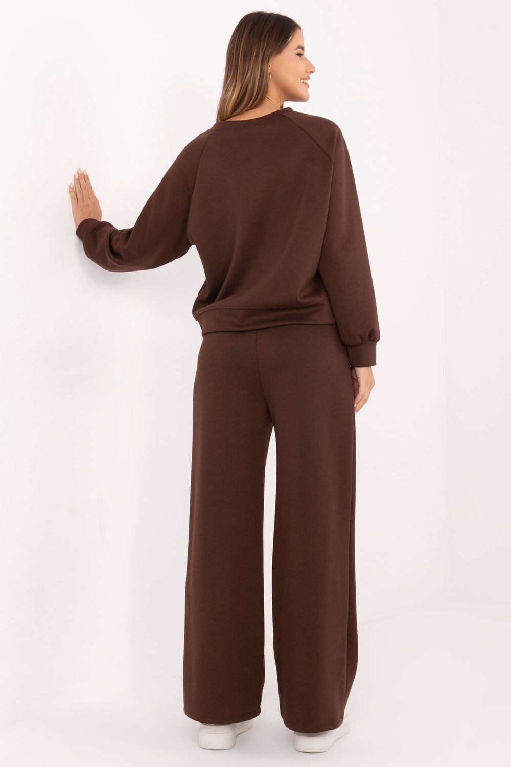 Ensemble de survêtement pour femmes fabriqué dans un matériau exceptionnellement doux de type beurre est le mélange parfait de confort et de style pour une utilisation quotidienne. Le tissu en mélange de viscose, de polyester et d’élasthanne est incroyablement doux, élastique et agréable au toucher, ce qui fait que l’ensemble est parfait aussi bien à la maison que pour sortir en ville. L’ensemble se compose d’un haut décontracté et d’un pantalon taille haute, dans lequel une bande élastique à la taille assure un ajustement parfait à la silhouette. Les larges jambes donnent de la légèreté et un aspect moderne à l’ensemble, tandis que les poches latérales soulignent le caractère pratique de l’ensemble.