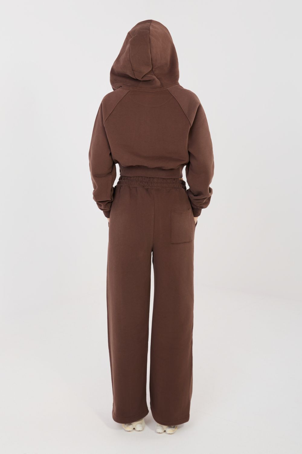 Ensemble de survêtement composé d’un sweat à capuche et d’un pantalon est une proposition idéale pour les personnes appréciant le confort et le style décontracté à la mode au quotidien. Le motif lisse confère à l’ensemble un caractère universel, ce qui le rend parfait pour les activités quotidiennes, les promenades et la détente à la maison. Le sweat à capuche à manches longues est équipé d’une capuche pratique et d’une fermeture éclair confortable, ce qui permet un enfilage rapide et un ajustement du confort thermique. La broderie subtile placée au niveau de la poitrine du côté gauche ajoute un accent élégant et distinctif à l’ensemble. Le pantalon a des jambes longues et larges qui offrent une liberté de mouvement et s’inscrivent dans les tendances actuelles. La taille haute met en valeur la taille, le cordon assure un ajustement confortable, et les poches latérales augmentent la fonctionnalité du modèle. Une broderie supplémentaire sur le pantalon crée un détail cohérent et esthétique avec le sweat. L’ensemble est fabriqué dans un mélange de coton et de polyester de haute qualité, ce qui allie douceur, respirabilité et durabilité. C’est un ensemble confortable et élégant qui conviendra parfaitement aux tenues quotidiennes.