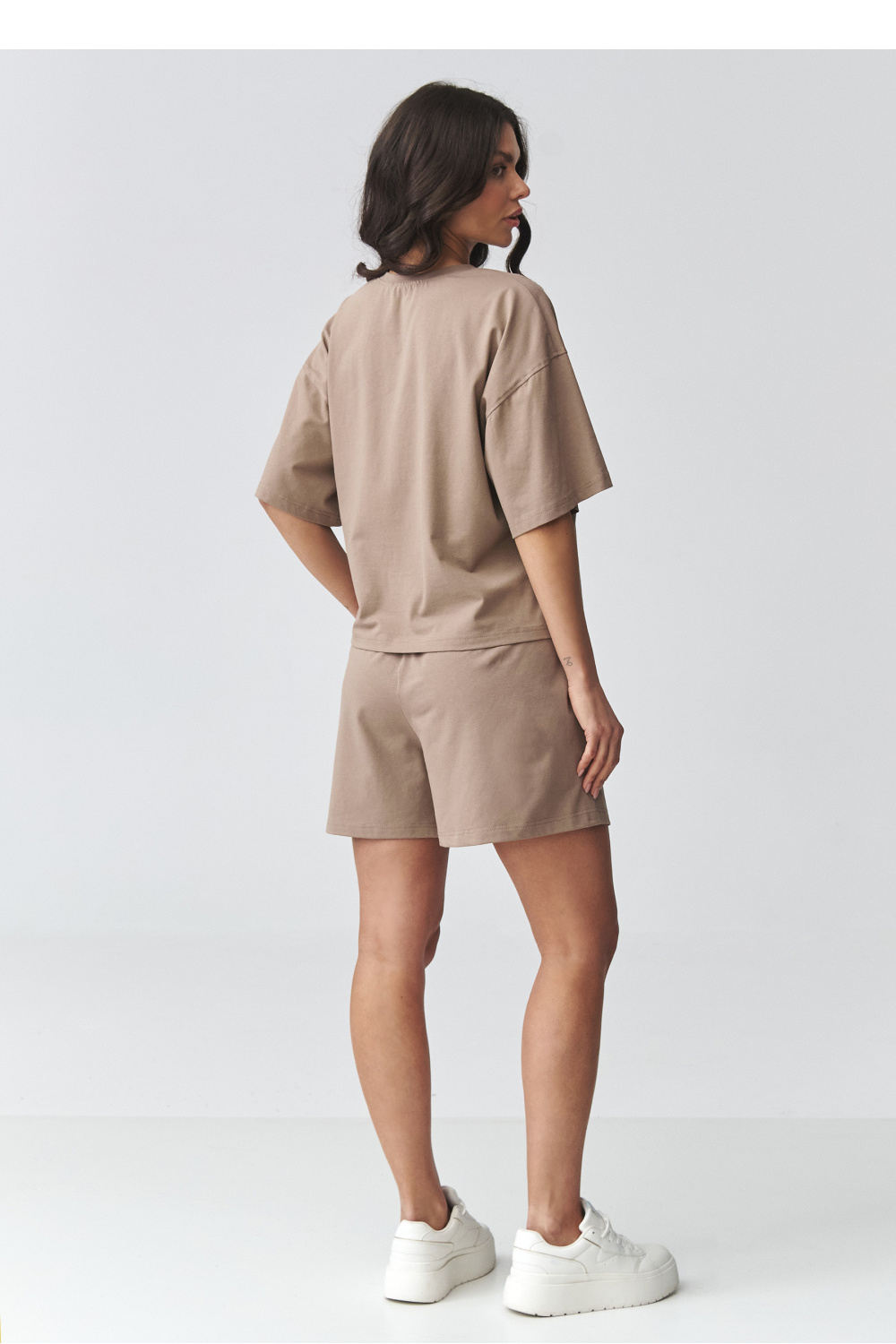 Un ensemble de dames élégant composé d’un chemisier ample à manches courtes et de shorts confortables est une proposition idéale pour les femmes qui apprécient le confort et un look à la mode. Le chemisier oversize lisse avec un décolleté rond offre une grande liberté de mouvement et s’ajuste parfaitement à la silhouette, créant un look moderne et minimaliste. Les shorts pour femmes avec une taille élastique garantissent un ajustement parfait et un confort toute la journée. La coupe ample et les poches pratiques augmentent la fonctionnalité de l’ensemble, en en faisant un excellent choix pour tous les jours, ainsi que pour des loisirs actifs. Cet ensemble de dames sportif est idéal pour une promenade, faire du shopping, partir en voyage ou se détendre à la maison. Associé à des baskets, il crée une tenue urbaine à la mode. Optez pour un ensemble de dames confortable qui allie confort, polyvalence et coupe intemporelle.