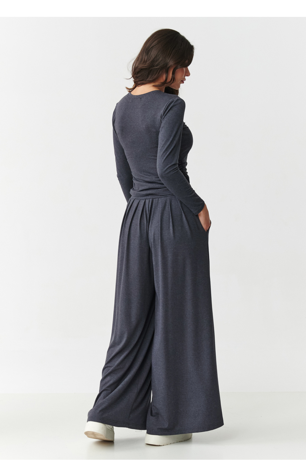 Cet ensemble est une proposition idéale pour les femmes à la recherche d’un mélange de confort, de style et de délicatesse. Fabriqué en viscose douce et agréable au toucher, il s’ajuste parfaitement à la silhouette, offrant une liberté de mouvement et un confort toute la journée. Le haut de l’ensemble est un chemisier ajusté à manches longues, se distinguant par des plis subtils sur les côtés. Ce détail féminin met en valeur la taille tout en donnant à l’ensemble un caractère élégant mais décontracté. Cette combinaison de simplicité et de détail tendance fait que le chemisier convient parfaitement non seulement en tant que partie de l’ensemble, mais aussi seul dans de nombreuses tenues. Les pantalons larges et fluides offrent à la fois confort et style. Grâce à la taille élastique et à la coupe ample, ils sont parfaits pour bouger, et les poches latérales ajoutent une touche de fonctionnalité. C’est le style parfait à porter à la maison ou dans des tenues de rue. Cet ensemble féminin est disponible dans des couleurs tendance et Taille uniques : anthracite, noir, chocolat, kaki et bordeaux. Optez pour le confort qui s’accorde avec l’élégance féminine en choisissant un ensemble en viscose qui s’adaptera à votre style de vie et votre silhouette.