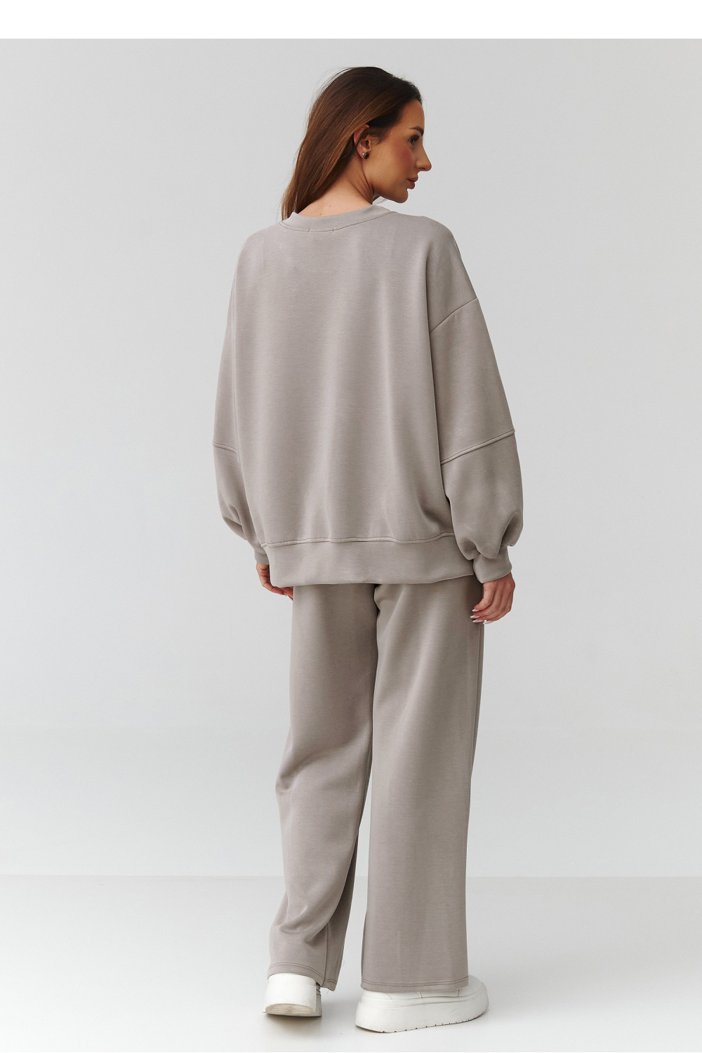 Ensemble de dames à la mode et confortable en taille oversize, parfait pour les tenues quotidiennes. L’ensemble se compose d’un pull ample et de pantalons confortables à jambe droite, créant un ensemble cohérent et élégant. L’ensemble est fabriqué dans un matériau doux et agréable au toucher, offrant un confort toute la journée. Les pantalons ont des poches et une taille élastique avec un cordon de serrage, ce qui les rend faciles à ajuster à la silhouette. La coupe oversize Taille unique convient à différents types de silhouette, et les couleurs neutres donnent à l’ensemble un caractère élégant et intemporel. Fabriqué en Italie.