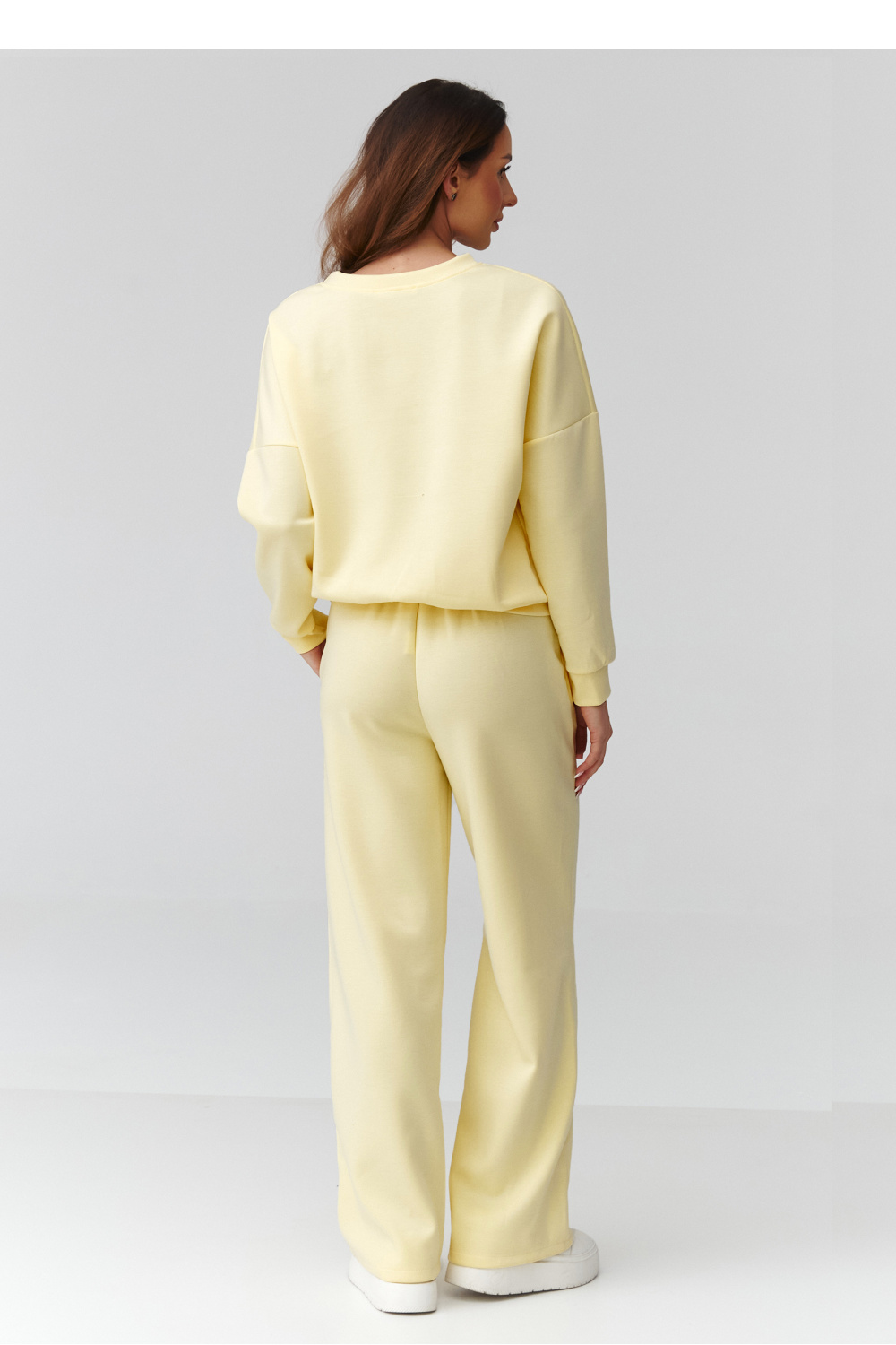 Ensemble féminin élégant et confortable taille unique, parfait pour la vie quotidienne, le télétravail, la promenade ou les voyages. L’ensemble se compose d’un sweat-shirt ample à manches longues et d’un pantalon à large jambe, offrant un confort maximal et un look à la mode. L’ensemble est fabriqué dans un matériau doux et agréable au toucher, qui s’ajuste bien à la silhouette et ne limite pas les mouvements. La coupe Taille unique s’adapte à différents types de morphologie. Les couleurs disponibles ajoutent de la fraîcheur et s’inscrivent parfaitement dans les tendances actuelles. Fabriqué en Italie.