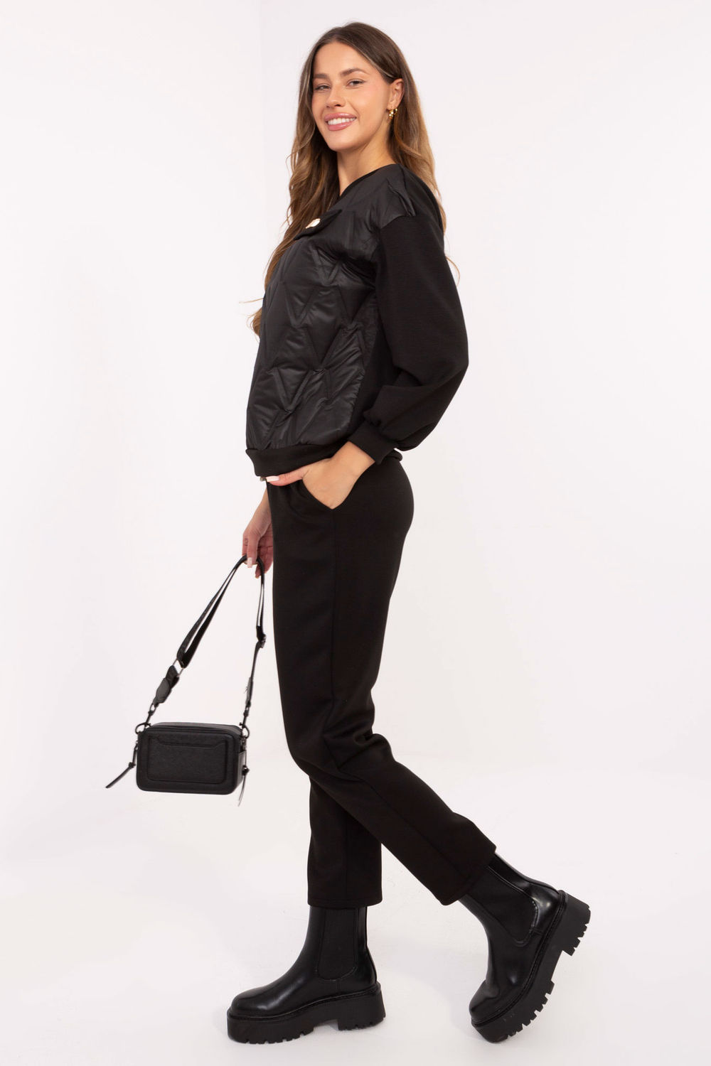 Un ensemble féminin élégant et incroyablement confortable dans un style décontracté, parfait pour tous les jours. Fabriqué à partir d’un mélange de haute qualité de viscose et d’élasthanne, il se caractérise par un tissu doux, délicat et particulièrement agréable au toucher. L’ensemble se compose d’un sweat-shirt et d’un pantalon, formant un ensemble cohérent et confortable. Le sweat-shirt a un col rond, des manches longues et un devant matelassé orné d’une broche, ce qui lui donne une touche élégante et féminine. Le pantalon taille haute, avec des jambes fuselées et des poches latérales insérées, garantit confort et praticité. La ceinture permet d’ajuster parfaitement l’ensemble à la silhouette. C’est un mélange de style décontracté avec une touche d’élégance, parfait à porter à la maison ou lors de sorties quotidiennes.
