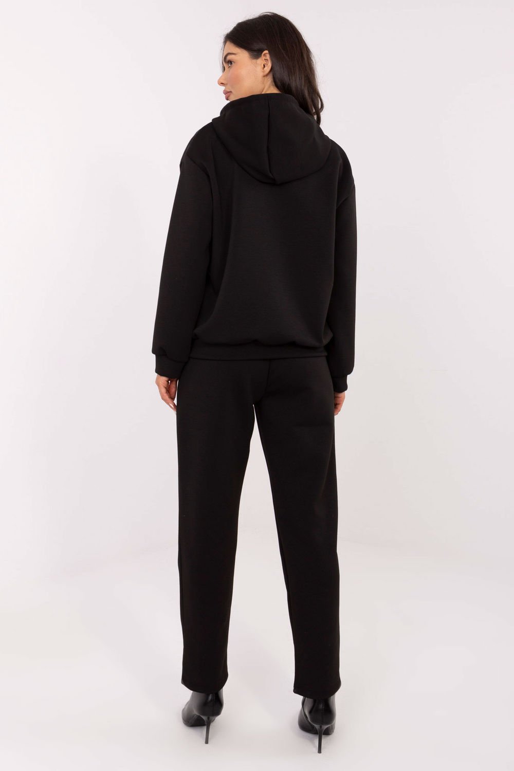 Un ensemble de survêtement élégant composé d’un sweat à capuche et d’un pantalon, parfait pour des tenues décontractées au quotidien. Fabriqué en viscose de haute qualité avec une texture variée, d’un matériau doux et agréable au toucher, garantissant un confort maximal. Le sweat-shirt a des manches longues et une capuche pratique, avec des détails de piquage décoratifs sur le devant lui donnant un caractère moderne. Le modèle se ferme à glissière, ce qui augmente le confort d’utilisation. Des poches à rabat ornées de broches élégantes sont placées à la hauteur de la poitrine, ajoutant une subtile originalité et une finition élégante. Le pantalon a une taille haute, des jambes fuselées et une taille élastique avec un cordon supplémentaire pour un ajustement parfait et un confort. Ils sont également équipés de poches latérales, ce qui les rend pratiques au quotidien. Des jambes longues, confortables et parfaitement ajustées à la silhouette. Cet ensemble séduit par sa combinaison de confort, de fonctionnalité et de détails à la mode, idéal pour les femmes qui apprécient un look élégant dans un style décontracté.