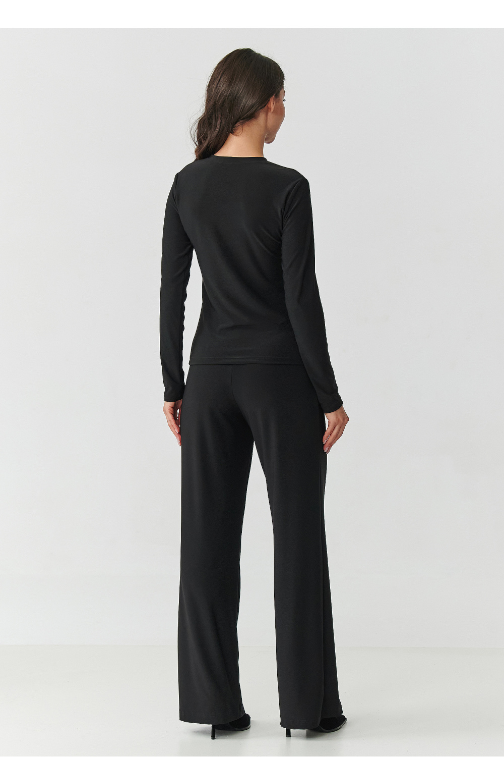 Misez sur l’élégance dans une version moderne! Cet ensemble noir pour femme est un mélange de confort et de style intemporel. Il se compose d’un chemisier ajusté à manches longues et d’un pantalon à jambes larges, créant un ensemble cohérent et élégant. Le chemisier avec des inserts subtils et transparents sur le décolleté et les manches ajoute de la légèreté et un caractère sensuel, tandis que l’encolure ronde souligne délicatement le cou et les épaules tout en offrant un confort au quotidien. Le pantalon a une taille haute qui met en valeur la taille et allonge la silhouette. Les jambes sont larges et tombent librement, ce qui ajoute de la légèreté à l’ensemble et rend le pantalon incroyablement confortable à porter. Le noir est un classique qui ne se démode jamais – il affine visuellement la silhouette et ajoute de l’élégance. Cet ensemble noir pour femme est un indispensable dans la garde-robe de toute femme qui aime être à la mode tout en se sentant à l’aise. Associez-le à vos escarpins ou bottines préférés et créez un look qui fera sensation en toutes circonstances.