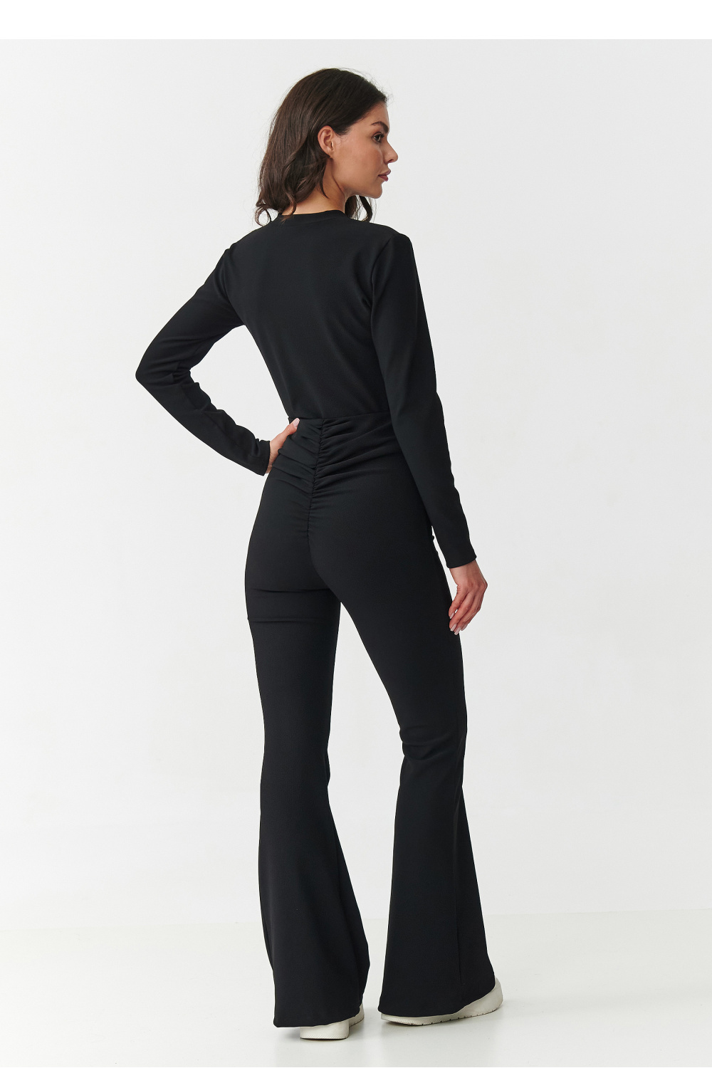 Misez sur un look qui allie élégance et confort ! Cet ensemble féminin unique se compose d’un chemisier ajusté à manches longues et d’un pantalon à taille haute et jambes évasées. Fabriqué dans un matériau côtelé de haute qualité, il met en valeur la silhouette et assure un confort toute la journée. Le chemisier a une coupe classique avec un décolleté montant et se ferme à l’arrière par une fermeture éclair, ce qui le rend confortable et très chic en même temps. Les pantalons taille haute soulignent la taille et sculptent la silhouette, et grâce aux plis à la taille, ils donnent à la silhouette des proportions tandis que les jambes évasées de type flare allongent optiquement les jambes. Disponible dans quatre couleurs intemporelles : le bourgogne féminin et sensuel, le noir classique qui s’adapte à tout, le chocolat moderne et audacieux, le beige élégant et subtil. C’est un ensemble qui conviendra à de nombreuses occasions, des rencontres en soirée aux sorties officielles en passant par les tenues de bureau. Il suffit d’ajouter vos chaussures à talons préférées et des bijoux pour créer un look spectaculaire et moderne.