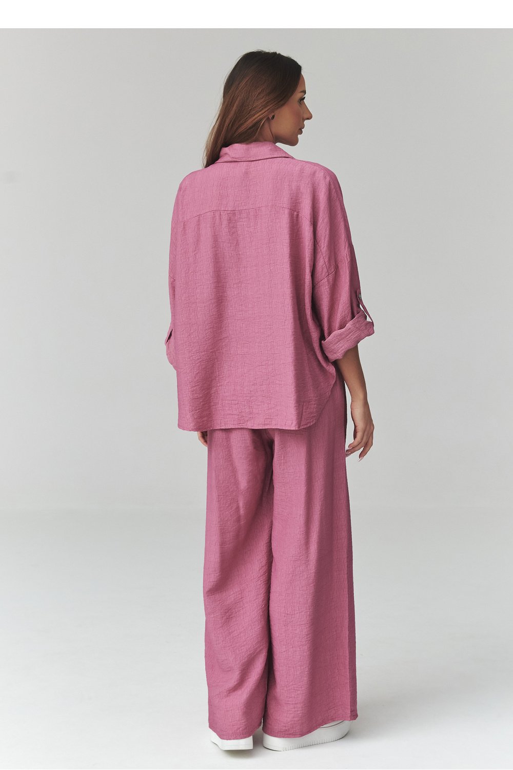 Un ensemble féminin élégant dans des nuances à la mode est une proposition idéale pour le printemps et l’été. L’ensemble se compose d’une chemise ample boutonnée et de pantalons larges avec une taille élastique, garantissant un confort maximal et une liberté de mouvement. Fabriqué dans un matériau léger et respirant. Le tissu est doux, respirant et agréable pour la peau, assurant un confort toute la journée. Cet ensemble féminin avec chemise et pantalon est une excellente base pour de nombreuses tenues. Associez-le à des baskets, des sandales ou des tongs pour créer un look décontracté, ou ajoutez des accessoires élégants pour un effet plus chic. Fabriqué en Italie.
