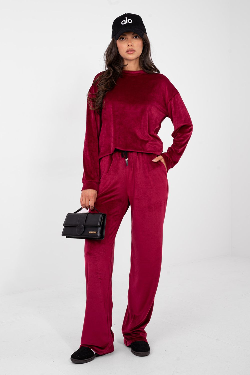 Ensemble de velours pour femme composé d’un pull et d’un pantalon, fabriqué dans un tissu doux et agréable au toucher en coton et polyester. Le pull a une coupe classique avec des manches longues et un col rond, idéal pour des tenues décontractées au quotidien. Le pantalon a des jambes droites et longues avec une taille haute, équipé de poches latérales pratiques. Le tout est complété par des cordons de serrage avec des zircons délicats, ajoutant une touche subtile et élégante à l’ensemble complet. Le motif lisse et la coupe confortable font de cet ensemble un choix parfait pour tous les jours et pour se détendre à la maison.