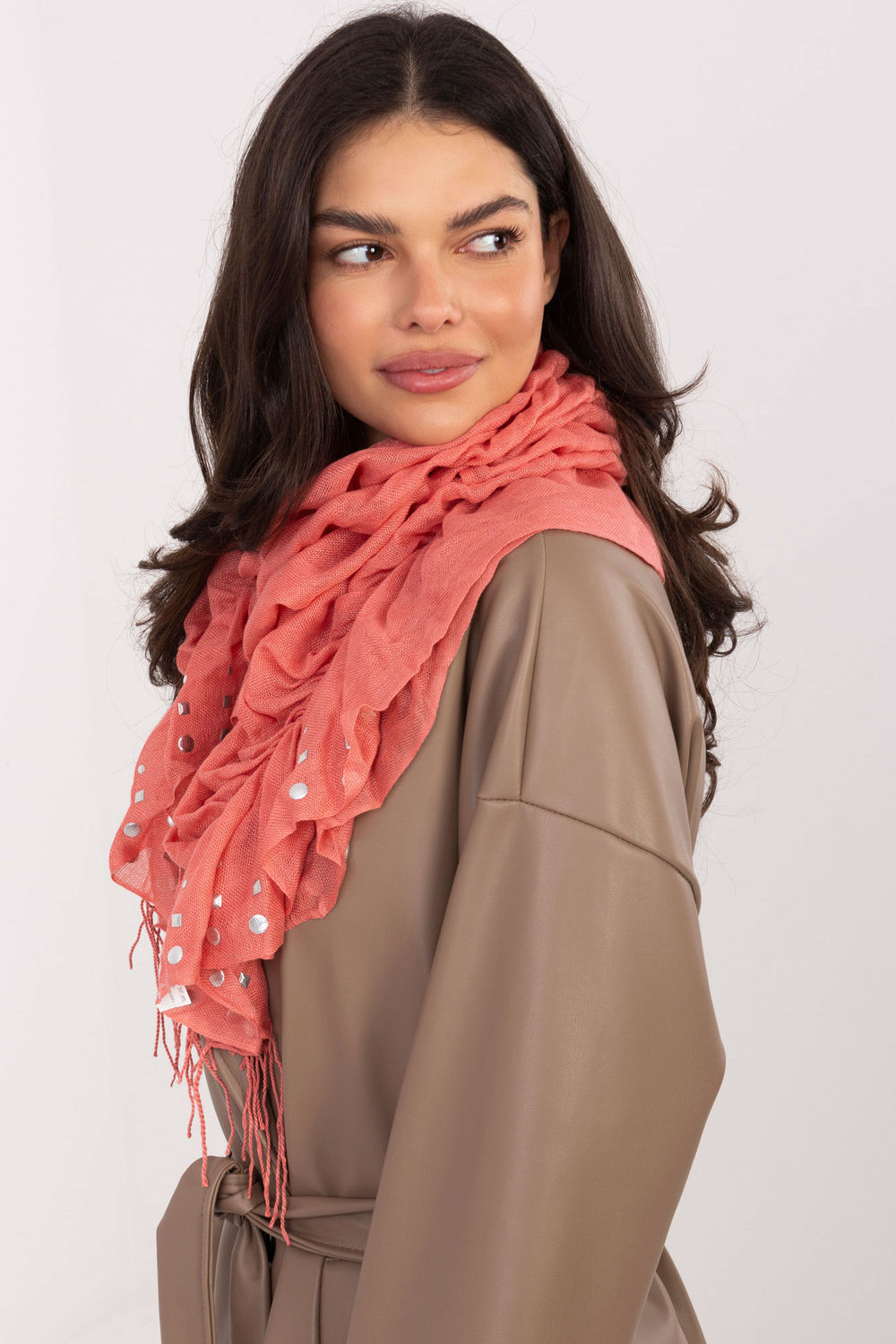 Une écharpe élégante avec des franges et des clous décoratifs est un accessoire spectaculaire qui complétera parfaitement les tenues quotidiennes ainsi que les styles plus audacieux. Fabriquée en viscose légère et agréable au toucher, elle se pose doucement autour du cou ou des épaules, offrant un confort de port. Avec des dimensions d’environ 134 cm de longueur et 47 cm de largeur, ce modèle offre de nombreuses possibilités de style, que ce soit porté de manière classique, lâche ou noué de différentes façons. Les franges décoratives et les clous subtils confèrent à l’écharpe un caractère à la mode et attirent le regard, en faisant un accent unique pour chaque tenue.
