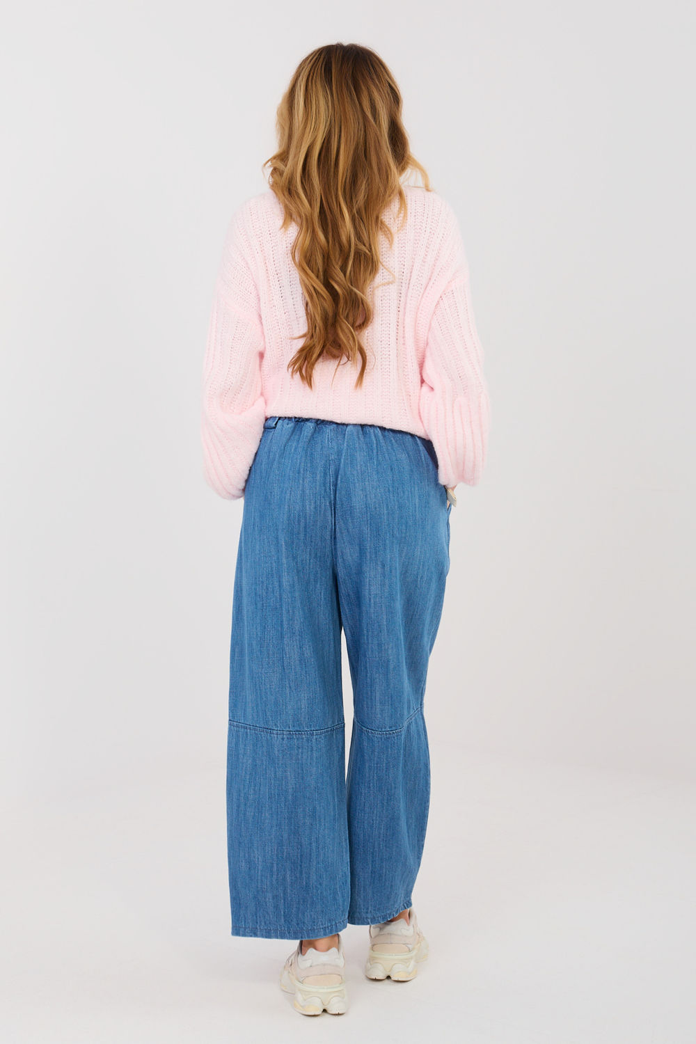 Pantalons en jean large pour femmes, culottes sont le parfait mélange de confort et de style à la mode. Fabriqués en coton de haute qualité, ils conviennent parfaitement aux tenues de tous les jours et aux ensembles décontractés pour le travail. Le modèle à taille haute avec une bande élastique à l’arrière assure un confort et un ajustement parfait à la silhouette. La longueur 7/8 et les larges jambes donnent aux pantalons légèreté et caractère moderne, typique du style culotte. Les plis décoratifs à l’avant soulignent subtilement la taille et ajoutent de l’élégance. Les pantalons n’ont pas de fermeture éclair, ce qui augmente le confort d’utilisation. Ils sont équipés de poches latérales, d’une ceinture fermée, qui est un accent élégant et pratique. Le motif lisse rend les pantalons faciles à assortir avec une chemise, un chemisier ou une veste. Une proposition Taille unique pour les femmes qui apprécient le confort, le style et le jean intemporel.