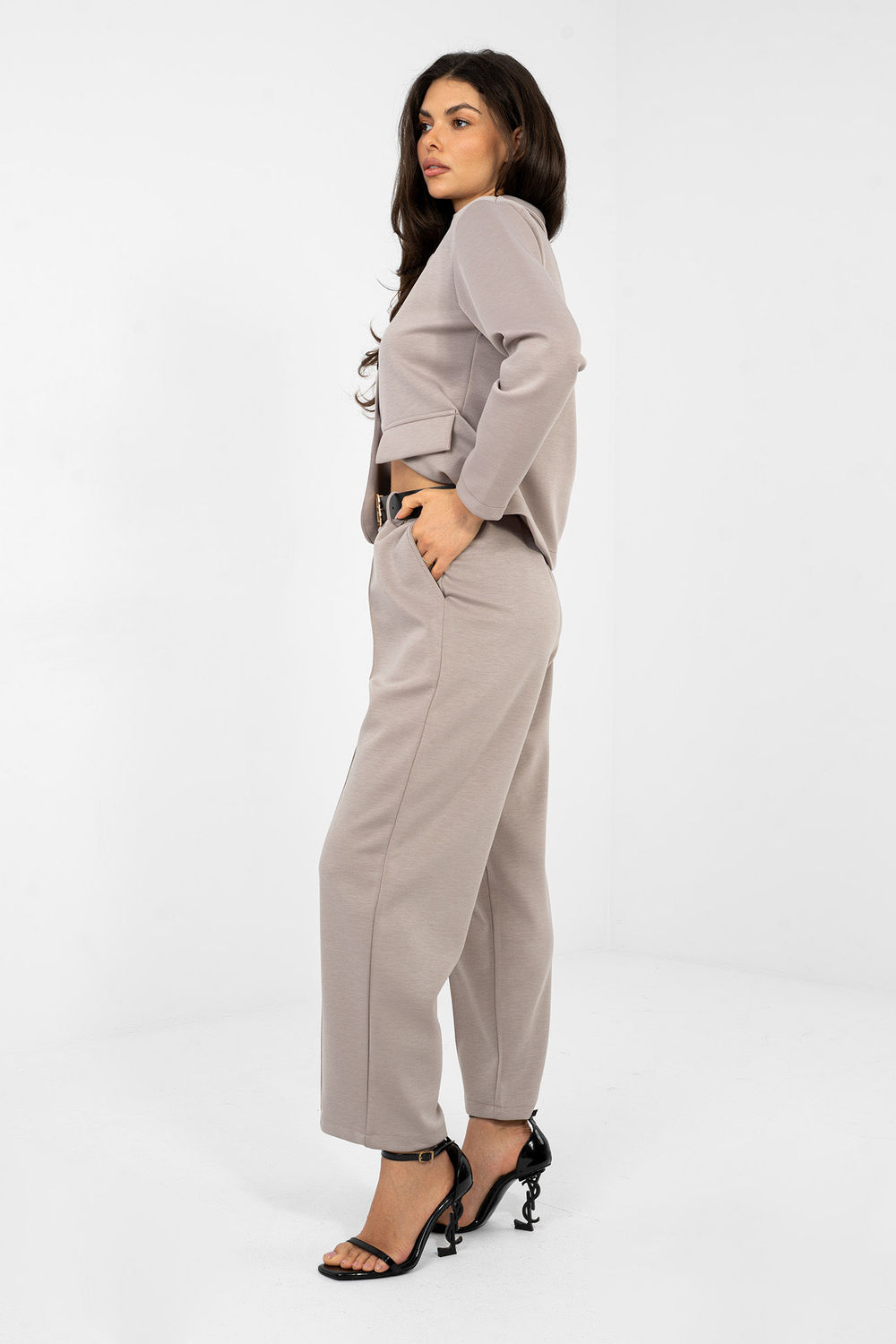 Pantalon de survêtement moderne au caractère élégant, qui conviendra parfaitement pour un usage quotidien, au travail, ainsi que pour des occasions spéciales. C’est le parfait mélange de confort et d’élégance dans un style moderne. Fabriqué en viscose de haute qualité avec une touche d’élasthanne, ils assurent un confort de port, une douceur et une liberté de mouvement. Le motif lisse et la coupe soignée leur donnent un aspect élégant. Le modèle à taille haute avec des jambes fuselées, cousues en pointe, allongent visuellement les jambes et mettent en valeur la silhouette. L’absence de fermeture classique améliore le confort d’utilisation, et les poches insérées ajoutent de la fonctionnalité. Un autre atout est la ceinture avec possibilité de fermeture, qui souligne la taille et donne aux pantalons un caractère plus élégant. C’est le choix idéal pour les femmes qui apprécient le confort des survêtements associé à un style élégant.