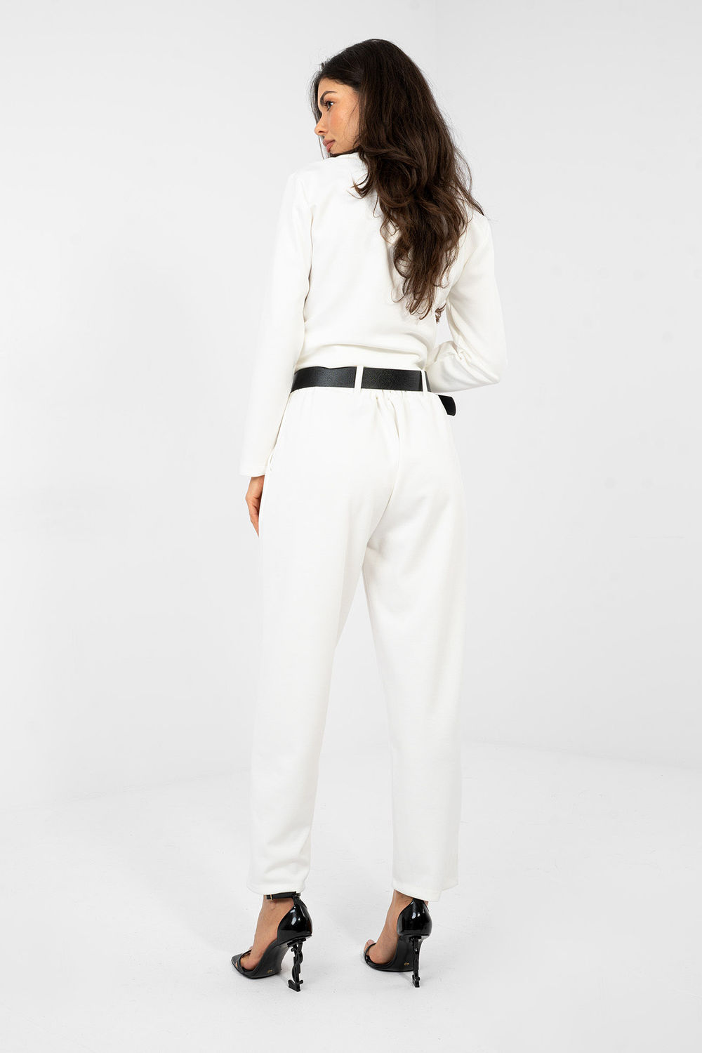 Pantalon de survêtement moderne au caractère élégant, qui conviendra parfaitement pour un usage quotidien, au travail, ainsi que pour des occasions spéciales. C’est le parfait mélange de confort et d’élégance dans un style moderne. Fabriqué en viscose de haute qualité avec une touche d’élasthanne, ils garantissent un confort de port, de la douceur et une liberté de mouvement. Le motif lisse et la coupe soignée leur donnent un aspect élégant. Le modèle à taille haute et aux jambes fuselées, surpiquées sur le côté, allongent optiquement les jambes et mettent en valeur la silhouette. L’absence de fermeture classique augmente le confort d’utilisation, et les poches latérales ajoutent de la fonctionnalité. Un autre atout est la ceinture avec possibilité de fermeture, qui souligne la taille et donne aux pantalons un caractère plus élégant. C’est le choix idéal pour les femmes qui apprécient le confort des survêtements associé à un style élégant.