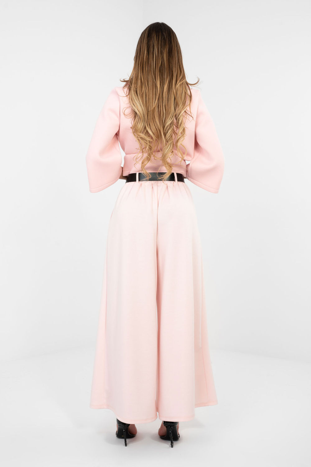Pantalon de jogging élégant de type palazzo est une combinaison de confort et d’élégance dans une version moderne. Fabriqué à partir d’un mélange de viscose, de polyester et d’élasthanne de haute qualité, il séduit par son tissu type beurre incroyablement doux, délicat et très agréable au toucher. Le matériau se pose magnifiquement sur la silhouette, offrant un confort toute la journée. Le modèle à taille haute a une bande de taille élastique qui garantit un ajustement parfait sans sensation de compression. En outre, la ceinture avec boucle accentue la taille et donne à l’ensemble un caractère élégant. L’absence de fermeture classique augmente le confort d’utilisation. Les larges jambes de style palazzo donnent à la silhouette légèreté et liberté, tandis que les plis décoratifs sur le devant ajoutent une touche raffinée aux pantalons. Le motif lisse rend le modèle polyvalent et facile à styler, parfait pour un usage quotidien et professionnel. Les poches latérales insérées ajoutent de la fonctionnalité, alliant praticité et style élégant.