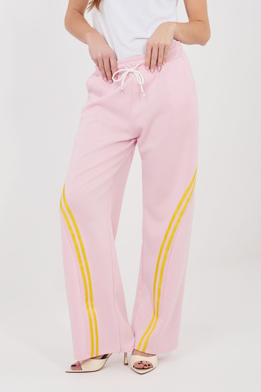 Les pantalons de survêtement pour femmes sont une proposition confortable et stylée pour tous les jours, idéale pour les femmes qui apprécient le confort et un look décontracté à la mode. Ils conviendront parfaitement pour les activités quotidiennes, les promenades, les courses ou la détente à la maison. Le modèle est fabriqué dans un mélange agréable au toucher de polyester, viscose et élasthanne. Grâce à cela, les pantalons sont doux, élastiques et s’adaptent bien à la silhouette, offrant une liberté de mouvement totale. Les pantalons ont une taille haute qui assure un confort de port et souligne joliment la taille. À la taille, il y a un cordon pratique qui permet un ajustement individuel à la silhouette. Des poches pratiques sont placées sur les côtés, idéales pour les petits objets. Le tissu lisse confère aux pantalons un caractère polyvalent, tandis que les bandes latérales en diagonale placées sur le devant des jambes ajoutent une touche moderne et sportivement élégante à l’ensemble. C’est un excellent choix pour les femmes qui veulent combiner le confort des survêtements avec un look quotidien à la mode.