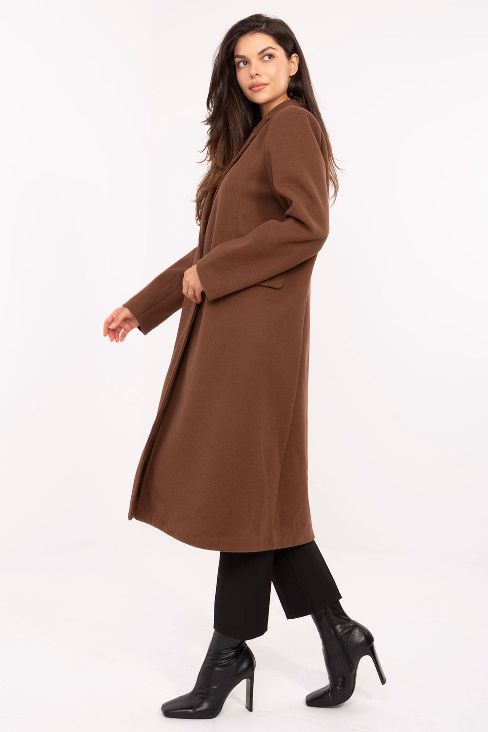 Un manteau élégant pour femme de coupe longue est un modèle intemporel qui conviendra parfaitement aussi bien au quotidien que dans des tenues de travail ou lors d’occasions spéciales. Fabriqué en polyester, avec une structure de tissu lisse, il présente un design minimaliste et élégant, soulignant son caractère classique. Le manteau est doté d’épaulettes intégrées qui donnent à la silhouette une ligne nette et élégante. Les revers et la fermeture à boutons simples soulignent son style intemporel. Le modèle est équipé d’une doublure et de poches pratiques insérées sous les rabats, qui complètent l’ensemble. C’est un manteau léger et polyvalent, parfait pour la saison automne, hiver et printemps, un choix idéal pour les femmes qui apprécient la classique dans une version moderne.