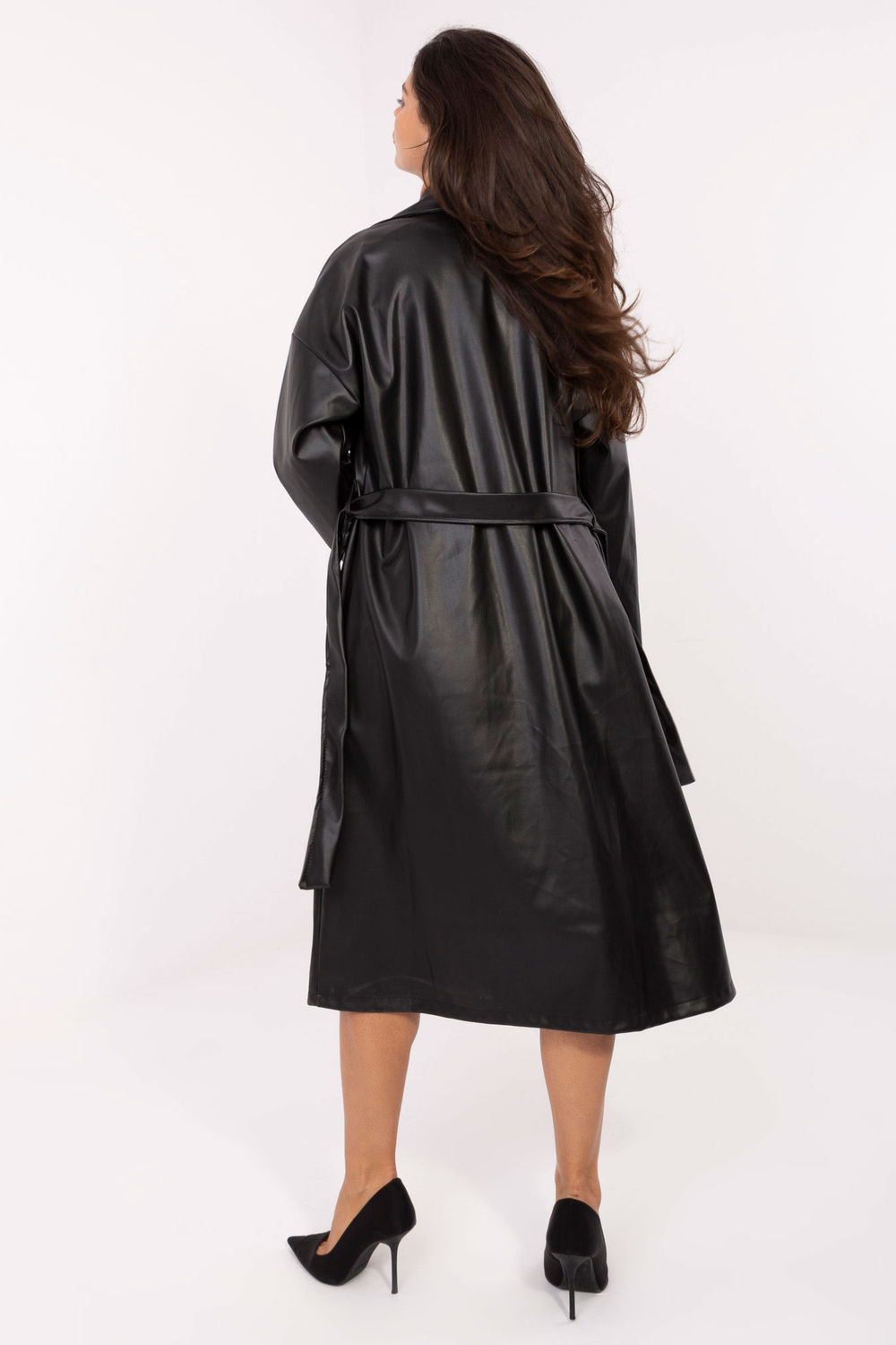 Manteau en cuir pour femme au caractère intemporel et décontracté, idéal comme couche extérieure pour l’automne, l’hiver et le printemps. Fabriqué à partir d’un mélange de polyester et de polyuréthane de haute qualité, il se distingue par sa texture lisse et son élégance. Ce modèle au-dessus du genou a été conçu avec soin pour les détails : il possède des revers classiques, des poches latérales et des manches longues. La fermeture double boutonnage lui donne de l’élégance, et la ceinture à nouer à la taille permet de souligner la silhouette et d’adapter la coupe à ses propres préférences. Léger, non doublé, il conviendra parfaitement aux tenues quotidiennes, alliant confort et design à la mode et intemporel. C’est un manteau polyvalent qui ajoutera de la classe à n’importe quelle tenue.