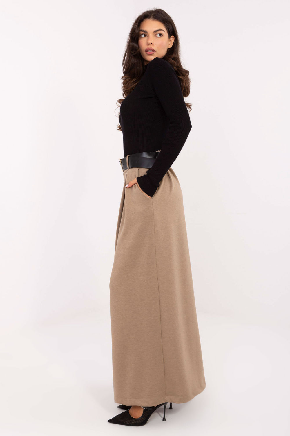 Pantalons pour femmes élégants de type palazzo, parfaits pour tous les jours et pour le travail. Fabriqués à partir d’un mélange de viscose et de polyester, ils se distinguent par leur structure lisse et leur confort de port. La taille haute avec une bande élastique et une ceinture boutonnée souligne la taille, et les plis décoratifs ajoutent de l’élégance à l’ensemble. Les jambes larges donnent de la légèreté à la silhouette, et les poches latérales pratiques et insérées assurent la fonctionnalité. C’est une proposition élégante qui allie élégance et confort.