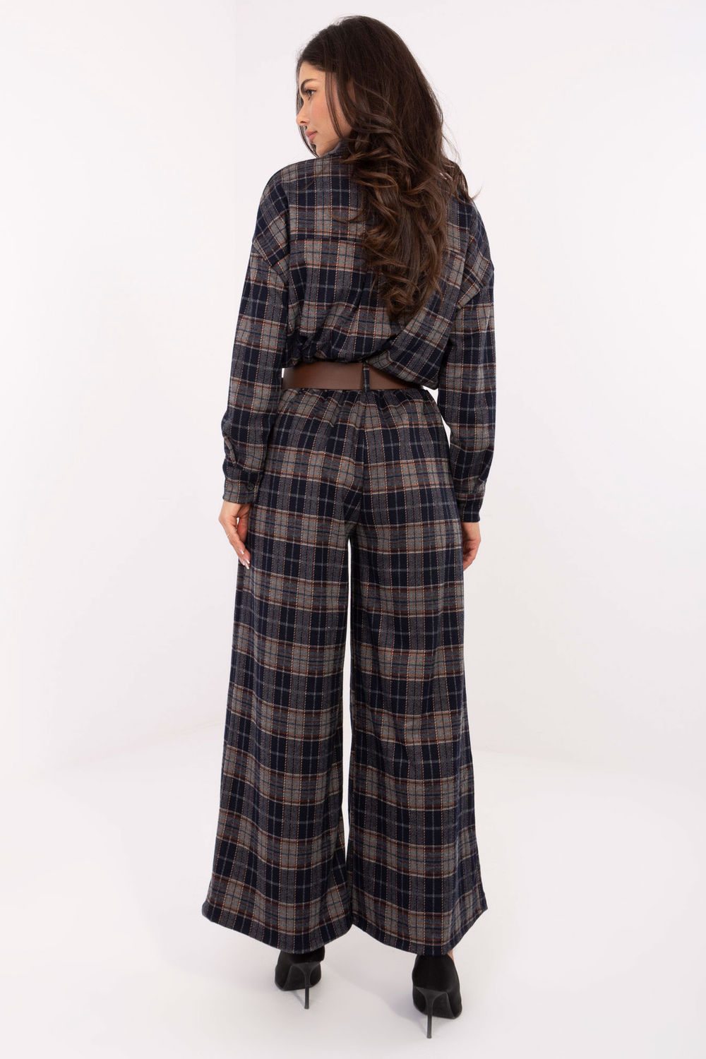 Pantalons pour femmes modernes et confortables en flanelle palazzo de caractère décontracté, parfaits pour les tenues quotidiennes. Fabriqués à partir d’un mélange de polyester, de viscose et d’élasthanne de haute qualité, ils offrent confort, légèreté et une légère élasticité, s’adaptant parfaitement à la silhouette. Le modèle a une taille haute et des jambes larges de type palazzo, qui allongent visuellement les jambes et donnent de la légèreté à la silhouette. Les poches latérales et la ceinture à nouer ajoutent une touche de praticité et permettent de souligner la taille. Les pantalons ont un motif à carreaux qui apporte une touche classique et intemporelle, et l’absence de fermeture les rend incroyablement confortables et faciles à porter. Il s’agit d’un modèle polyvalent qui conviendra parfaitement aux tenues décontractées et élégantes, que ce soit pour le quotidien ou pour des tenues de travail.