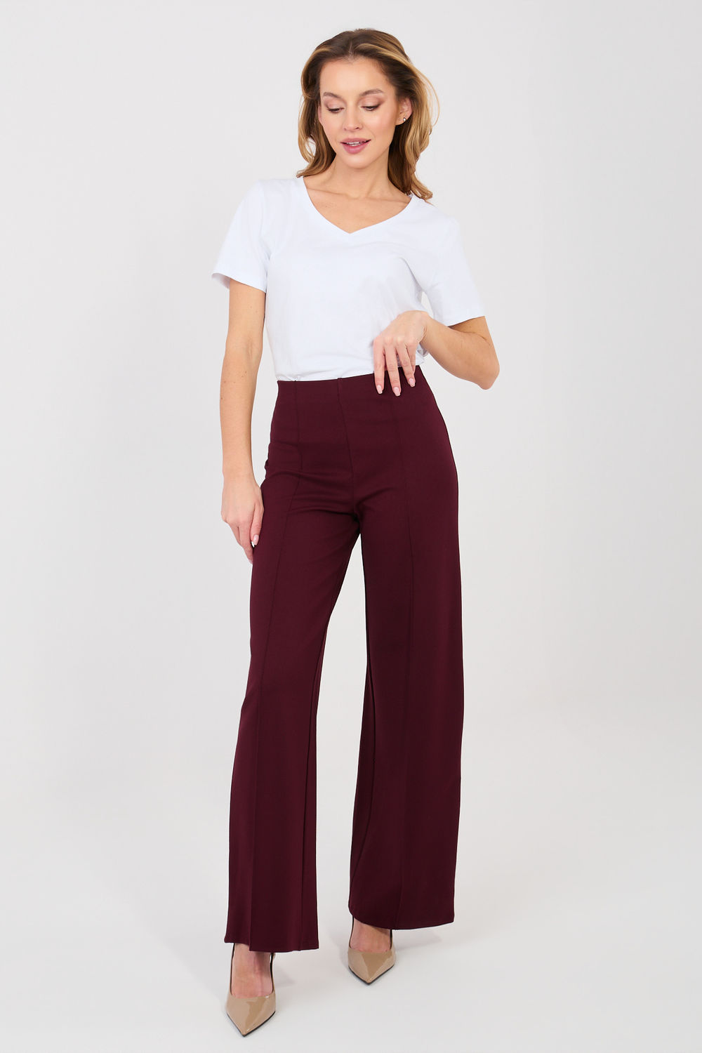Des pantalons pour femmes modernes et confortables de coupe large, parfaits pour les styles quotidiens et de bureau. Fabriqués à partir d’un mélange de viscose, d’élasthanne et de nylon, ils sont doux, extensibles et s’ajustent parfaitement à la silhouette, offrant un confort toute la journée. Le motif lisse dominant rend les pantalons polyvalents et faciles à combiner avec divers éléments de garde-robe. Le modèle a une taille haute qui souligne la taille et affine la silhouette. Les pantalons n’ont pas de fermeture, ce qui augmente le confort d’utilisation, ils se portent rapidement et confortablement. Les jambes larges donnent de la légèreté et un caractère moderne à l’ensemble, et l’absence de poches assure une ligne lisse et minimaliste. Parfait pour les femmes qui apprécient le confort, la simplicité et le style moderne.