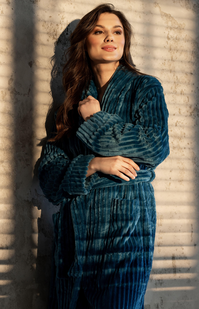 Un peignoir de femme élégant qui allie style et confort en un seul. Conçu pour un usage quotidien, il conviendra parfaitement comme vêtement d’intérieur pratique et élégant cadeau, grâce à sa palette de couleurs à la mode et sa haute qualité de fabrication. Le modèle à manches longues avec des poignets présente une esthétique classique, tandis que les poches pratiques ajoutent de la fonctionnalité. La ceinture permet un ajustement parfait à la silhouette, assurant un confort de port. Le matériau peu rétrécissant garantit durabilité et aspect esthétique pendant longtemps. Le peignoir est emballé dans un sac élégant, ce qui en fait une excellente idée cadeau. Conçu et fabriqué en Pologne, avec une attention particulière aux détails, il est le choix idéal pour les femmes qui apprécient une apparence à la mode et le confort dans la vie quotidienne.