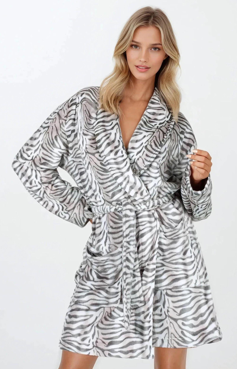Robe de chambre pour femme, coupe ample et confortable, avec une ceinture à nouer. Robe de chambre sans poches, à manches longues.