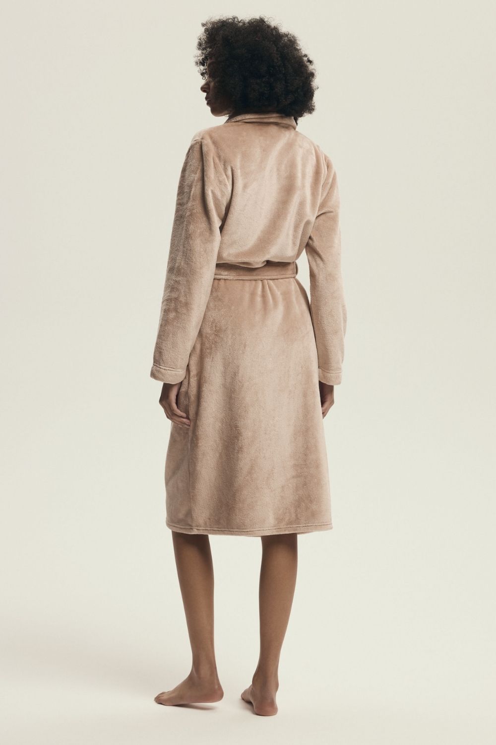 Peignoir élégant pour femme fabriqué en tissu brillant qui lui donne un caractère subtil et féminin. Modèle confortable avec des poches pratiques et un ourlet semi-circulaire qui s’adapte joliment à la silhouette. Le peignoir a une ceinture à nouer à la taille, permettant de l’ajuster à la silhouette, et est emballé dans un sac en plastique, parfait également comme cadeau élégant.