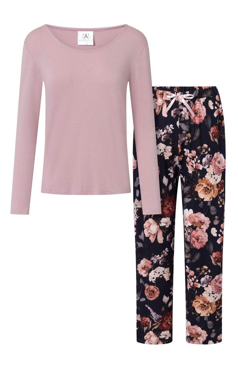 Chemisier à manches longues et encolure en U. Pantalon long avec ceinture élastique et poches à glissière. Pyjama en tissu naturel. Conçu et cousu en Pologne.