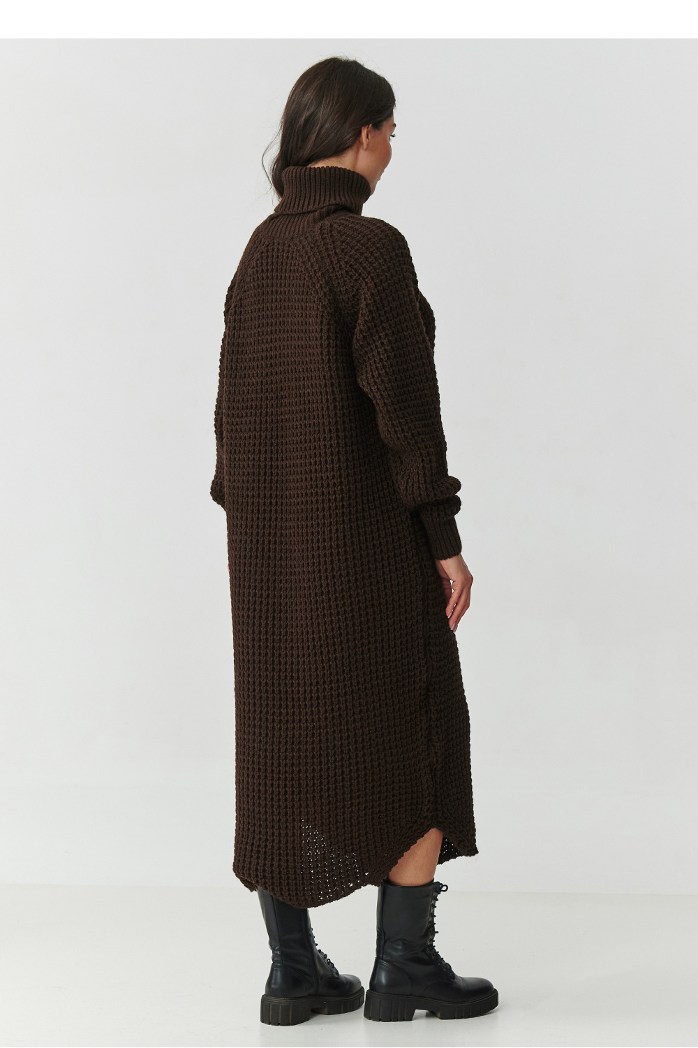 Immergez-vous dans l’ambiance automne-hiver avec une robe qui allie design à la mode, confort et praticité. La robe pull pour femme avec un col roulé haut est une proposition qui conviendra aussi bien au quotidien qu’aux tenues élégantes. Fabriquée dans une maille de haute qualité, composée d’acrylique et de Polyamide, elle est douce, agréable au toucher et résistante aux déformations. Ainsi, elle conserve son bel aspect même après de nombreux lavages, tout en enveloppant de chaleur les jours plus frais. Le col haut et enveloppant protège du froid et ajoute du style, tandis que les manches longues et la coupe ample offrent liberté et confort de port. La coupe midi affine la silhouette et convient à différents types de morphologie, tandis que les fentes sur les côtés apportent de la légèreté et soulignent le caractère moderne. Cette robe pull midi avec col roulé est un incontournable dans toute garde-robe, idéale pour le travail, les rencontres ou les promenades hivernales. Il suffit de l’associer avec des bottines ou des bottes hautes pour créer une tenue impressionnante pour toute occasion.