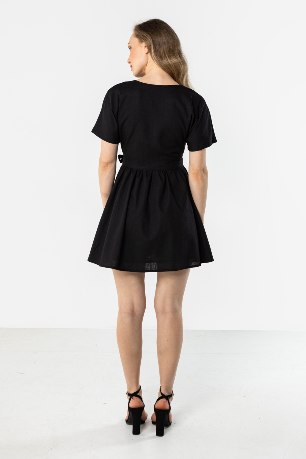 La robe légère à coupe portefeuille est une proposition idéale pour les journées chaudes. Le décolleté en V souligne subtilement le cou et donne à la tenue un caractère féminin, tandis que la ceinture à la taille modèle joliment la silhouette. Les manches courtes assurent un confort de port, et le bas évasé ajoute de la légèreté et de la liberté à l’ensemble. Le tissu naturel en lin fait que ce modèle est parfait pour un usage quotidien et pour les sorties estivales.