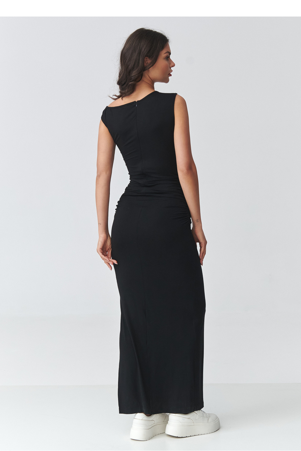Cette robe maxi ajustée est le parfait mélange de classe et de style moderne. La longueur jusqu’aux chevilles met magnifiquement en valeur la silhouette, et les plis subtils à la taille et aux hanches modèlent visuellement la figure, assurant un effet amincissant. C’est un choix parfait pour les femmes qui apprécient les robes de soirée élégantes au style intemporel. Le haut avec un décolleté délicat en forme de bateau met en valeur les épaules et le cou, donnant à la tenue légèreté et caractère féminin. Sans manches, ce modèle convient parfaitement aussi bien pour les cérémonies que pour les soirées cocktails. La fente haute sur la jambe ajoute une touche de sensualité et de liberté de mouvement à l’ensemble. Fabriquée dans un tissu élastique et agréable au toucher, cette robe ajustée à la silhouette assure un confort de port toute la journée ou toute la soirée. C’est la robe idéale pour un mariage, une réception, ainsi qu’une proposition élégante pour un rendez-vous ou un dîner chic. Optez pour une robe maxi féminine avec une fente, qui mettra en valeur vos atouts et vous fera vous sentir exceptionnelle dans toutes les situations.